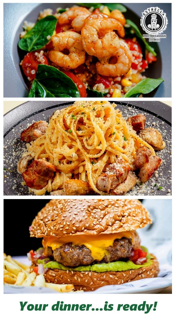 Εναλλακτικά, το Estrella, στην εξωτερική αυλή, αποτελεί το must eating point στην ανατολική Θεσσαλονίκη για όλους. Μια μέρα στο Estrella ξεκινάει με brunch και κλείνει τέλεια με κοκτέιλ και φαγητό σε άψογο food pairing!