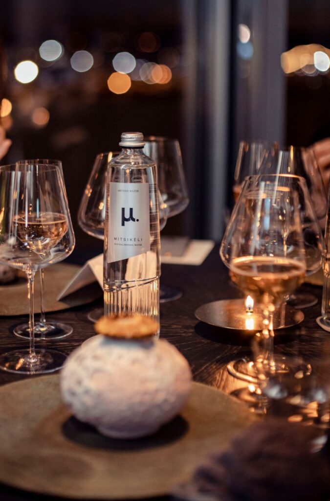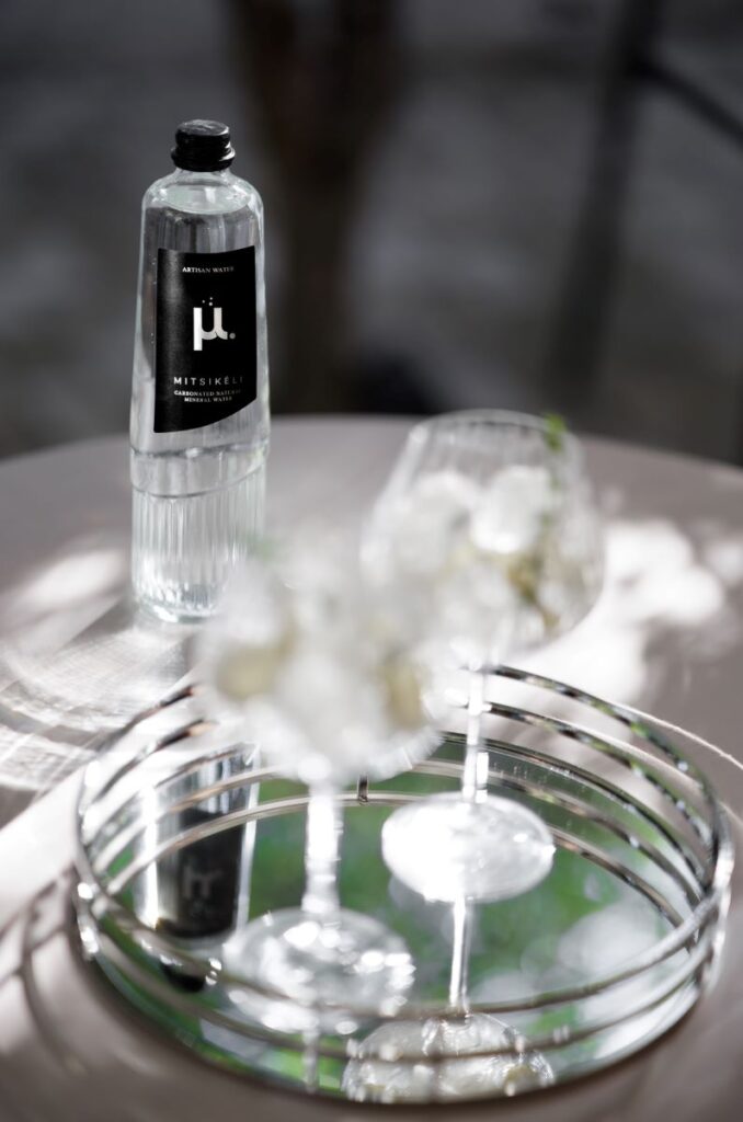 Η βραβευμένη γυάλινη φιάλη του μ. εντάσσεται με φυσικότητα σε περιβάλλοντα υψηλής γαστρονομίας, χωρίς να διεκδικεί προσοχή, αλλά ενισχύοντας τη συνολική αισθητική του τραπεζιού. Είναι μια παρουσία που δεν διακόπτει τη ροή του γεύματος, αλλά τη συμπληρώνει, ακολουθώντας την ίδια λογική που διέπει τη σύγχρονη εστίαση: ισορροπία, καθαρότητα, προσοχή στη λεπτομέρεια.