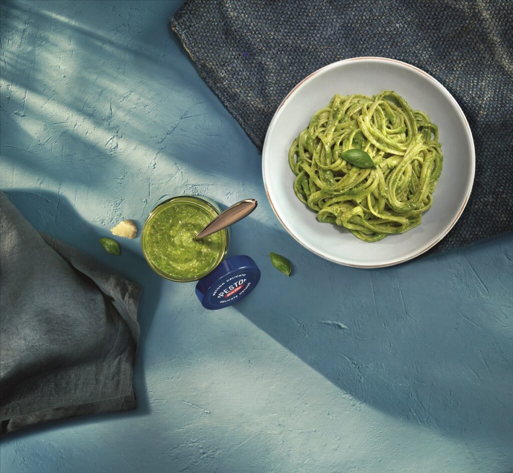 Έχεις την pesto alla genovese σάλτσα στα χέρια σου; Τότε δεν χρειάζεται να ανησυχείς για τίποτα! Το πιο απλό αλλά και τέλειο γεύμα θα είναι έτοιμο στο πι και φι! Επιλέγεις τα ζυμαρικά που προτιμάς: εμείς προτείνουμε σπαγγέτι, λινγκουίνι ή ριγκατόνι. Στη συνέχεια, τα βράζεις, ακολουθώντας τις οδηγίες της συσκευασίας ώστε να βγουν al dente. Και δεν έχεις παρά να προσθέσεις τη σάλτσα και να σερβίρεις!