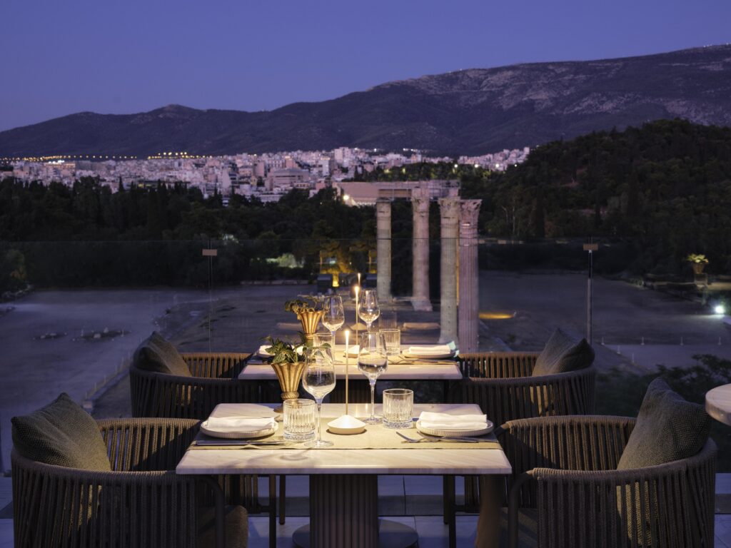 Στην ταράτσα του Anthology of Athens, του βραβευμένου boutique hotel με Michelin Key και μέλους των Leading Hotels of the World, το δείπνο μετατρέπεται σε ολοκληρωμένη εμπειρία, με φόντο την πιο εμβληματική θέα της πόλης.