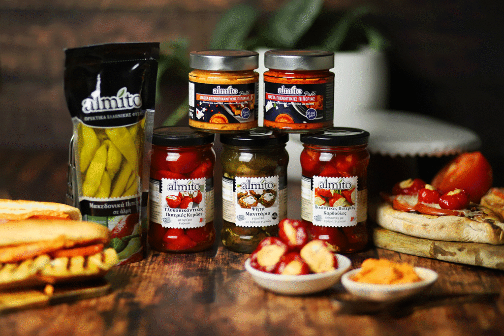 Οι γεύσεις almito, όπως τα μακεδονικά πιπεράκια, τα ψητά μανιτάρια, οι πιπεριές γεμιστές με τυρί και οι πάστες πιπεριάς με τυρί φέτα, έχουν δημιουργηθεί με αγάπη και μεράκι στη χώρα μας, από αγνά υλικά της ελληνικής γης. Συνδυάζονται εύκολα με διαφορετικά πιάτα και γεμίζουν το τραπέζι με γνώριμα, παραδοσιακά αρώματα της ελληνικής και μεσογειακής διατροφής και κουλτούρας.