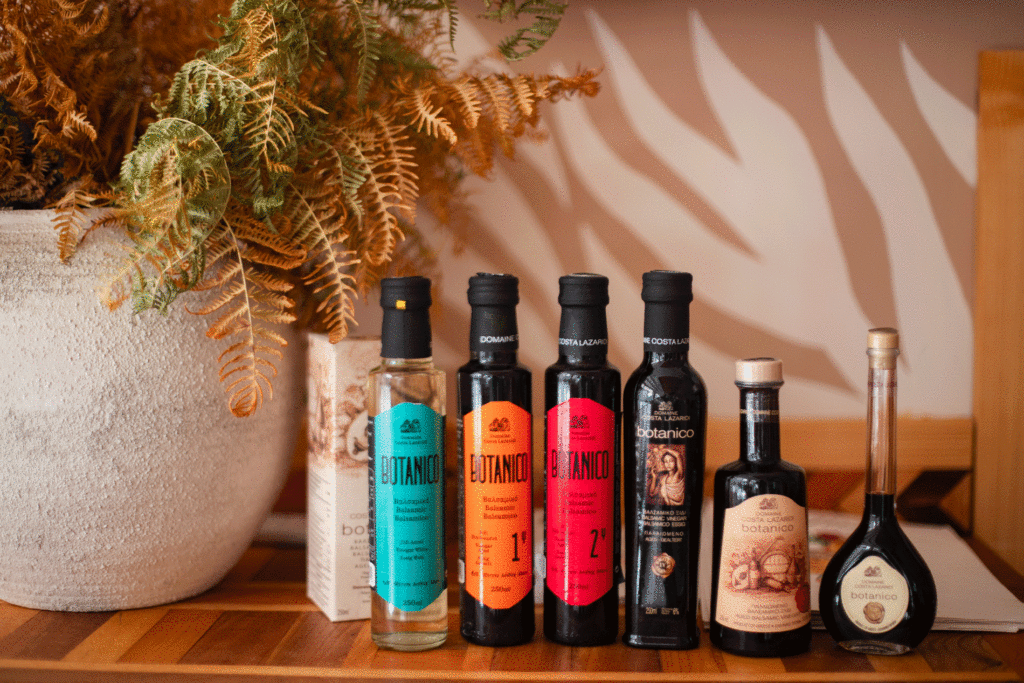 Παράλληλα, η παραγωγή μιας σειράς υψηλής ποιότητας βαλσαμικών ξιδιών ήταν μια πρόκληση για το Κτήμα Κώστα Λαζαρίδη, στην οποία ανταποκρίθηκε με επιτυχία. Ήδη από τις αρχές της δεκαετίας του 2000, ύστερα από πειραματισμούς και δοκιμές αρκετών χρόνων, παρουσίασε τις δύο κορυφαίες ετικέτες της σειράς, που στη συνέχεια συμπληρώθηκε με τέσσερις ακόμα. Αποτελούν προϊόντα υψηλής διατροφικής αξίας με άριστη πρώτη ύλη και εξαιρετικές προδιαγραφές καθώς συνδυάζονται ποικιλοτρόπως στην καθημερινή διατροφή.
