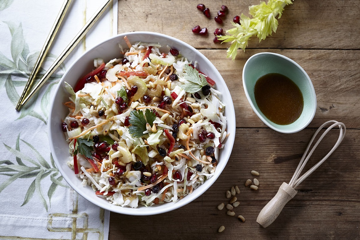 Η πολίτικη σαλάτα με ρόδι και κουκουνάρι είναι ένας θεσπέσιος τύπος σαλάτας, ιδανικός για γιορτινά τραπέζια. Η Αργυρώ Μπαρμπαρίγου ετοίμασε μια ιδιαίτερη πολύχρωμη, θρεπτική και νόστιμη συνταγή και είναι σίγουρο ότι θα εντυπωσιάσετε τους καλεσμένους σας σε γιορτινές περιστάσεις και όχι μόνο.