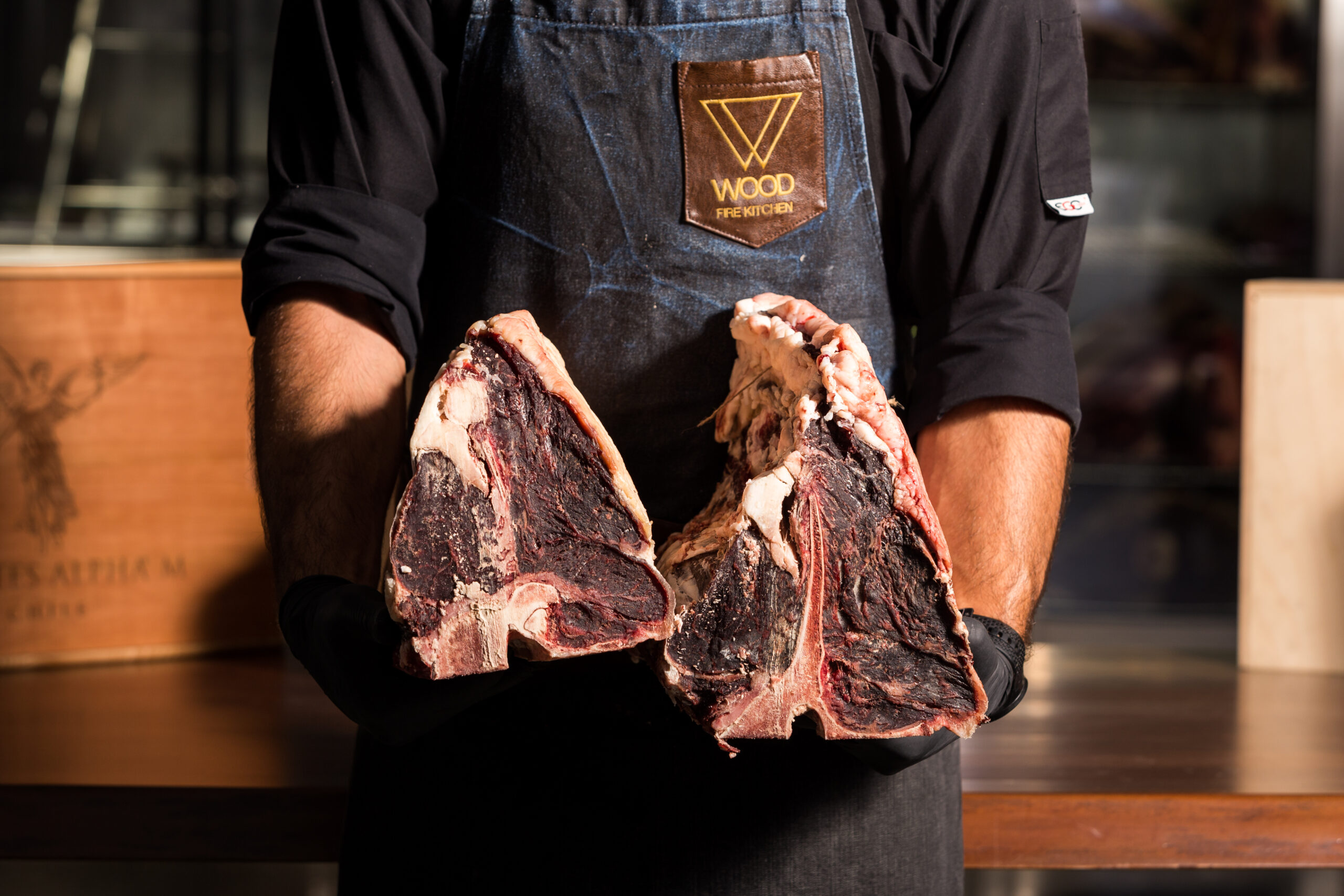 Μοσχαρίσια Τagliata, σιγομαγειρεμένο Οssobuco και ιδιαίτερες κοπές όπως Chateaubriand, Picanha Black Angus και Wagyu Rib Eye Ισπανίας ξεχωρίζουν στο μενού. Rib Eye USA ξηράς ωρίμανσης 45+ ημέρες σε βούτυρο με μαύρη ελληνική τρούφα και δυσεύρετα -για την ελληνική αγορά- κρέατα, όπως η ράτσα Rubia Galega / Galicia – Ισπανίας συμπληρώνουν την πληθώρα επιλογών. Στο Wood κάθε κομμάτι κρέατος αξιοποιείται με τον καλύτερο τρόπο και μαγειρεύεται με τον κατάλληλο τρόπο.