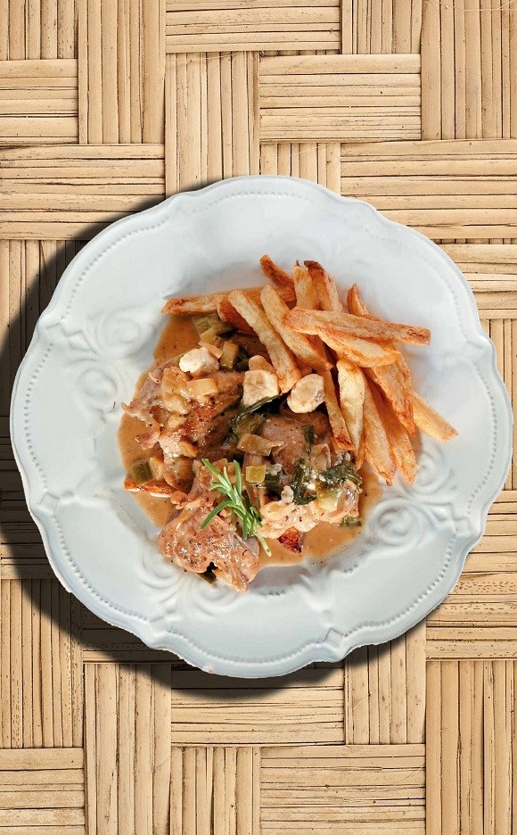 Χοιρινή τηγανιά με τηγανητές πατάτες