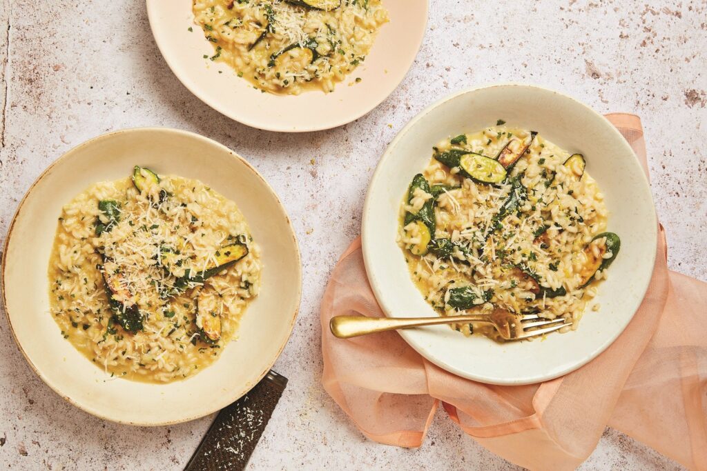 Ένα ριζότο διαφορετικό απ’ τα συνηθισμένα. Ειδικά τώρα που αρχίζει και ανοίγει ο καιρός, αφήνουμε στην άκρη την κολοκύθα και πιάνουμε τα κολοκυθάκια, που εδώ δένουν τέλεια με τη λεμονάτη γεύση του φαγητού.