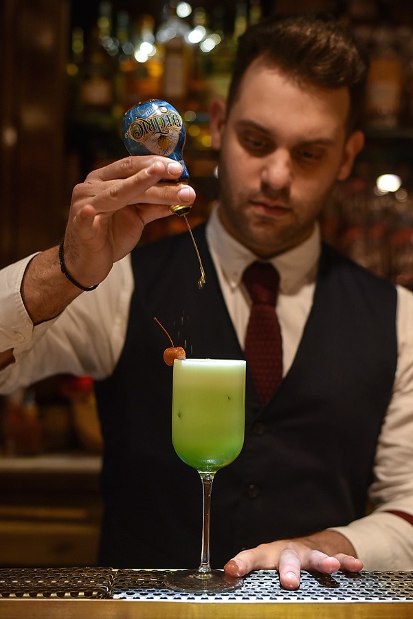 Φρέσκο, κομψό, ίντριγκα στον ουρανίσκο. Αυτό είναι ίσως το πιο αντιπροσωπευτικό τρίπτυχο που περιγράφει το αποτέλεσμα της δουλειάς που γίνεται σε μια από τις αθηναϊκές μπάρες που αξίζει πολλές επαναλαμβανόμενες επισκέψεις για να δοκιμαστεί σε όλες τις δημιουργικές πτυχές της. Αισθητικά προσεγμένα κοκτέιλ, απόλυτα ισορροπημένα, συνδυάζουν τη φινέτσα και το διαχρονικό στιλ του κλασικού με τη νεωτεριστική διάθεση ενός σύγχρονου μπαρ. Ο συνιδιοκτήτης Σπύρος Κερκύρας, γνωστός στην πιάτσα για τα δημιουργικά concepts που επιμελείται, πλαισιώνεται από μια ομάδα έμπειρων bartenders όπως ο Θάνος Καρεκλάς, που έχει αναλάβει χρέη Head Bartender, όπως και τους Δημήτρη Κασβίκη και Μάνθο Γκουβέλη, που ετοιμάζουν perfect serves με βάση αποστάγματα όπως τεκίλα ή ρούμι, αλλά και ποτά όπως το ουίσκι σε στιλάτες κλασικές εκδοχές ή ενδιαφέρουσες παραλλαγές. Αναζητήστε το αρωματικό Malty & Foamy με Talisker 10 ετών, αλατισμένη καραμέλα, bitters μαύρου καρυδιού και αφρό σοκολάτας, ένα κοκτέιλ με γεύσεις ξεκάθαρες, ισορροπίες άρτιες και αρωματικό σύνολο που ίσως να το καταστήσει ένα από τα best sellers της νέας τους κάρτας. Αν ωστόσο προτιμάτε πιο δροσερά «σύνολα», μάλλον θα σάς κερδίσει το γοητευτικό Smells like Apple Spirit, με βότκα, εκχύλισμα λουίζας, cordial πράσινου μήλου, yuzu και electric bitters ενώ ενδιαφέρουσα είναι και η «ζωηρή» λίστα με τα Bubbles & Highballs.