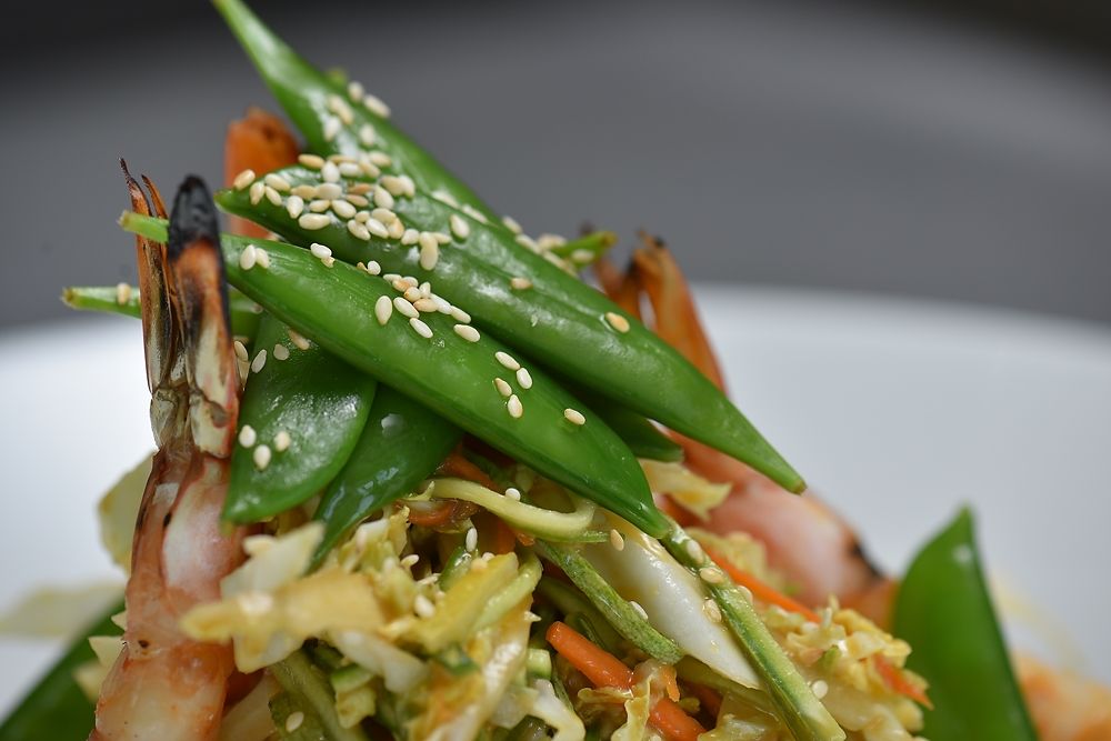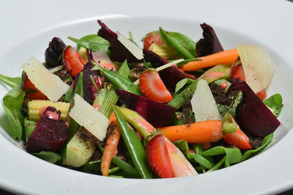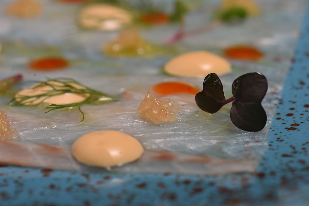 Ξεκινάμε οπωσδήποτε με σαλάτα με γαρίδες, ψιλοκομμένα λαχανικά, σησαμέλαιο αλλά και με αυτήν με baby λαχανικά και vinaigrette φράουλας. Το carpaccio από λαβράκι με μαγιονέζα αχινού και finger lime είναι ένα εξαιρετικό ορεκτικό που μόνο εκεί μπορεί να γευτεί κανείς, όπως και το κατσικίσιο τυρί με φρούτα και φιστίκι.