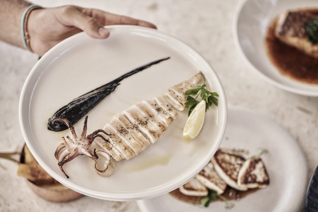 Στο κεντρικό μενού πρωταγωνιστούν τα βασικά υλικά της αγαπημένης μεσογειακής κουζίνας και η γεύση τους παραμένει αυτούσια, απαλλαγμένη από περίπλοκες τεχνικές: φρέσκο ψάρι και θαλασσινά, ντόπια κρέατα και λαχανικά, φρέσκιες σαλάτες και χειροποίητα μακαρόνια. Δοκιμάστε σύγχρονες παραλλαγές παραδοσιακών πιάτων, όπως η σφυρίδα μπουρδέτο και ο κόκορας παστιτσάδα, μοντέρνες παρασκευές με εξαιρετικά ωμά όπως ταρτάρ από ψάρι ημέρας και θαλασσινά. Ένα από τα πολύ υποσχόμενα πιάτα του μενού είναι το καλαμάρι με μους μαύρου ταραμά. Παράλληλα, δεν λείπουν από το μενού vegetarian επιλογές, όπως τα φρέσκα λαχανικά εποχής σε τραγανή tempura batter ή τα φρέσκα tagliolini με πέστο πιπεριάς Φλωρίνης και παλαιωμένο ανθότυρο Κρήτης.