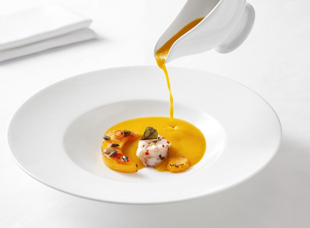 Μέσα στο μενού συμπεριλαμβάνονται γεμιστοί μαρουλοντολμάδες με μυρώνια και σάλτσα λεμονιού αρωματισμένη με μαστίχα -όπου οι γαρίδες Αμβρακικού χαρίζουν τη θαλασσινή τους γεύση- αλλά και λινγκουίνι, «guanciale» και σάλτσα μασκαρπόνε με τρούφα. Στη ρεβυθάδα, η γεύση της σούπας ενισχύεται με Συμιακό γαριδάκι από τα Δωδεκάνησα και το πιάτο σερβίρεται με γαρίδες βορείου Αιγαίου, ενώ οι γαρίδες Κοιλάδος Ερμιόνης πρωταγωνιστούν στο καρπάτσιο με μανταρίνι, μέλι πεύκου, αυγοτάραχο και παντζάρι.