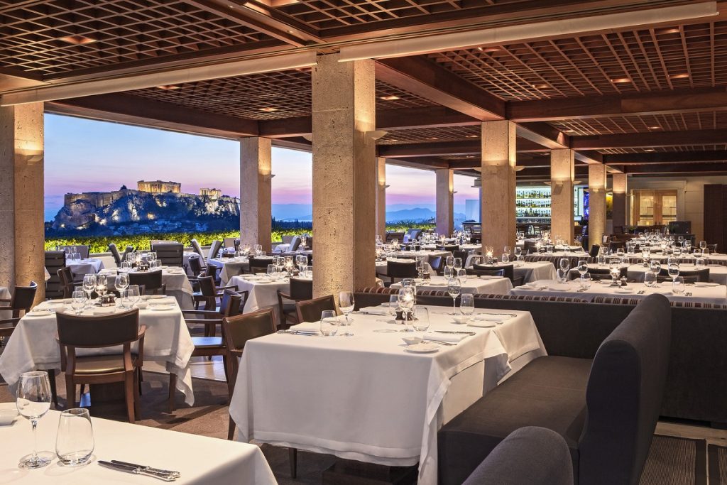 GB Roof Garden Restaurant, 8ος όροφος, Ξενοδοχείο Μεγάλη Βρεταννία, Βασιλέως Γεωργίου 1Α,Τηλ. 2103330766, www.gbroofgarden.gr