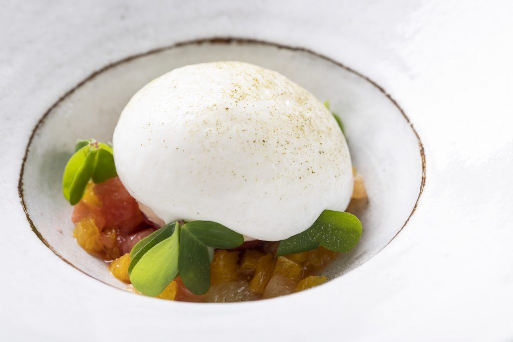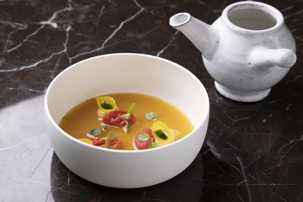 Με τη μοναδική θέα στα πόδια μου και ένα κοκτέιλ από το Irida lounge bar στο χέρι κατέβηκα τα σκαλάκια για να δοκιμάσω τις γεύσεις για τις οποίες επισκέφτηκα το νησί. Οι προσδοκίες μου ήταν ήδη υψηλές αφού γνώριζα από πριν ότι το εστιατόριο Galazia Hytra είναι ουσιαστικά το αδελφάκι του βραβευμένου με αστέρι Michelin εστιατορίου Hytra και μέλος του Ομίλου Τραστέλη που διαθέτει μερικά από τα σημαντικότερα εστιατόρια της χώρας. Ο Τάσος Μαντής έχει επιμεληθεί και αυτό το μενού, μόνο που εδώ του έχει δώσει ένα στίγμα πιο νησιωτικό – και εύλογο είναι – στην προσπάθειά του να ενσωματώσει στις συνταγές του όσο το δυνατόν περισσότερα τοπικά υλικά. Αυτό άλλωστε είναι και χαρακτηριστικό της κουζίνας του: η διαρκής αναζήτηση εξαιρετικών πρώτων υλών, που αναδεικνύουν την τοπικότητα και η απόδοσή τους σε πιάτα δημιουργικά και ελληνικά. Κάτι που βίωσα από το πρώτο κιόλας πιάτο: Μια υπέροχη κακαβιά με πατάτες και κρεμμυδάκια αρωματισμένα με σαφράν και βασιλικό. Μια σούπα καλοκαιρινή, νησιωτική, ελληνική με γκουρμέ αποχρώσεις που δύσκολα θα ξεχάσω. Στα πρώτα ξεχώρισα ακόμα τη σουπιά με το σπανάκι, που εδώ έρχεται με μια κατακόκκινη σάλτσα, που έχει κόκκινη πιπεριά και φρέσκα βότανα, αλλά και το ριγανάτο χταποδάκι, που παντρεύεται ιδανικά με πατάτες λεμονάτες, τουρσί αγκινάρας, πορτοκάλι και νεροκάρδαμο.