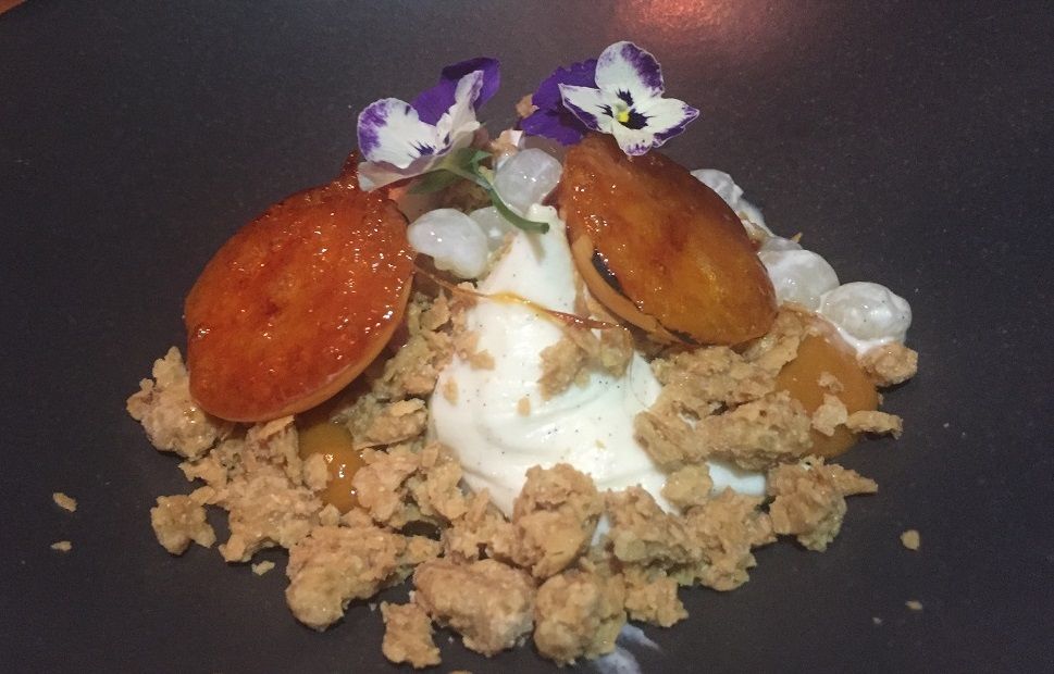 Και να που μετά από όλα αυτά τα νόστιμα είχε έρθει η ώρα του γλυκού. Είχα δει ότι η τάρτα κανέλας με παγωτό κανέλα -που θριάμβευε το χειμώνα- διατηρούσε τη θέση της στον κατάλογο, οπότε θα ήταν αμαρτία να μην την παραγγείλουμε. Για δεύτερο γλυκό πήραμε την κρέμα με καραμελωμένα βερίκοκα και πουρέ από βερίκοκο, που έμοιαζε με την αθώα παιδική κρέμα, που ζητούσα απεγνωσμένα τα καλοκαιρινά απογεύματα στο εξοχικό. Όσα για τα σορμπέ, που ήρθαν bonus στο τραπέζι, σφράγισαν το ωραίο φινάλε.