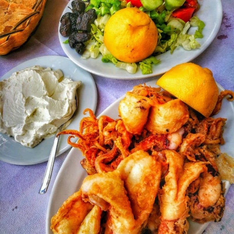 Κούλουμα: 4 πιάτα με θαλασσινά και μια σαλάτα