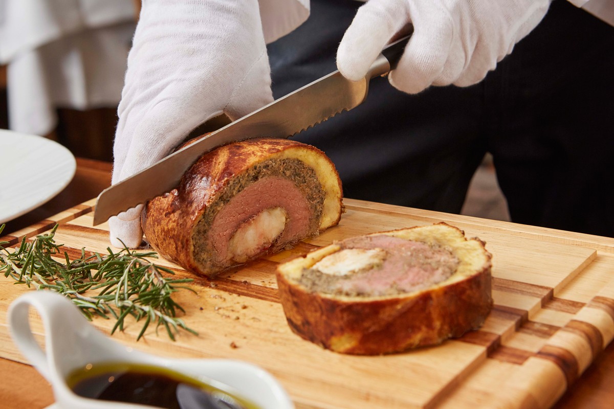 Από 25/1 έως 24/3 λοιπόν οι επισκέπτες του εστιατορίου μπορούν να δοκιμάσουν τρεις εκδοχές του περίφημου αυτού πιάτου: Μοσχάρι σε ζύμη σφολιάτας, με καρδιά από φιλέτο μοσχαριού, προσούτο, duxelle μανιταριών, σάλτσα με κρασί Βουργουνδίας και τρούφα (€39), θαλασσινά σε ζύμη αρωματισμένη με μυρωδικά, με αιγαιοπελαγίτικο λαβράκι, γαρίδες και όστρακα και σάλτσα beurre blanc με εσπεριδοειδή και σαφράν (€36), καθώς και το surf n turf σε ζύμη brioche, με φιλέτο από μοσχαράκι γάλακτος με αστακό, φουά γκρα, duxelle μανιταριών και σάλτσα bearnaise αστακού (€39).