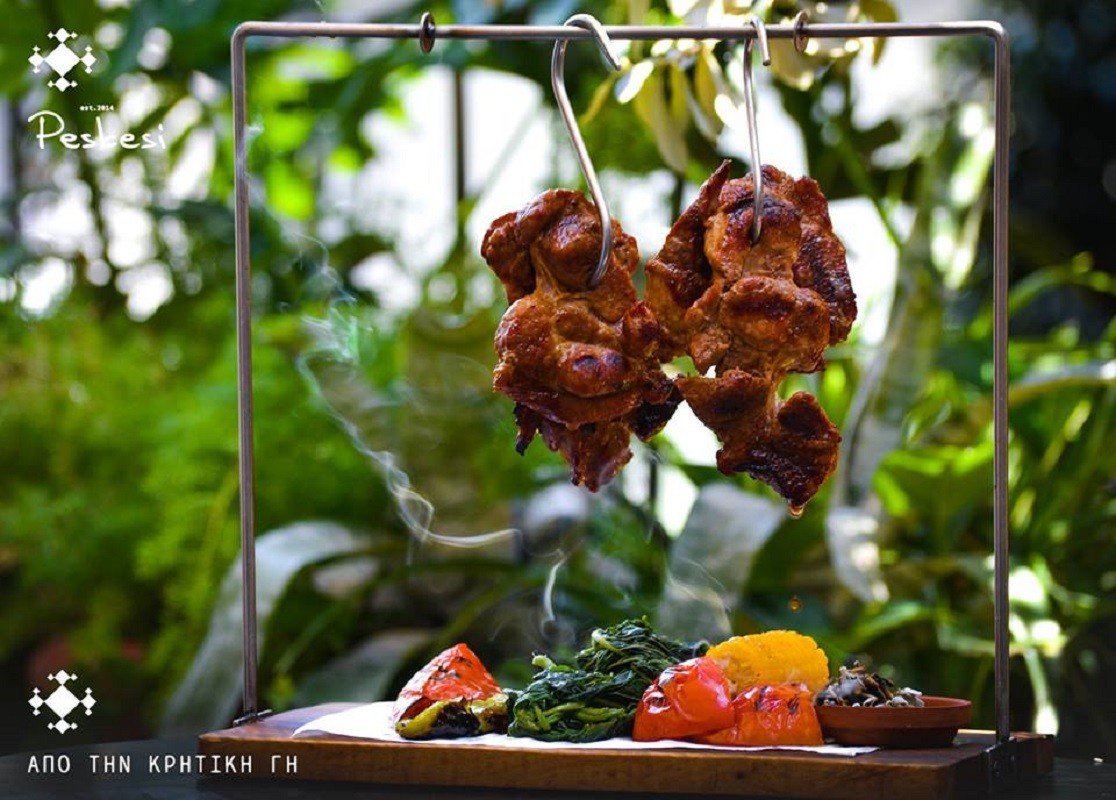 Θα ήταν άσκοπο να μπω σε μια παράθεση πιάτων τα οποία θα χαρακτήριζα όλα εξαιρετικά. Μπορώ όμως να πω ότι στο Πεσκέσι θα δοκιμάσεις μαναρόλια, ένα όσπριο που θυμίζει λευκό τετράγωνο μικρό κουκί, μαγειρεμένα στην κατσαρόλα ή φάβα από λαθούρι, σαλάτες με άγρια χόρτα που χάνεις τον αριθμό τους αν αρχίσεις να μετράς. Αρνάκι με ασκολύμπρους, ομελέτα με άγρια σπαράγγια, φρικασέ και άλλες κρητικές νοστιμιές μαγειρεμένες με τόση προσοχή και αγάπη που μόνο σε σπίτι άξιας Κρητικιάς μαγείρισσας μπορείς να βρεις.