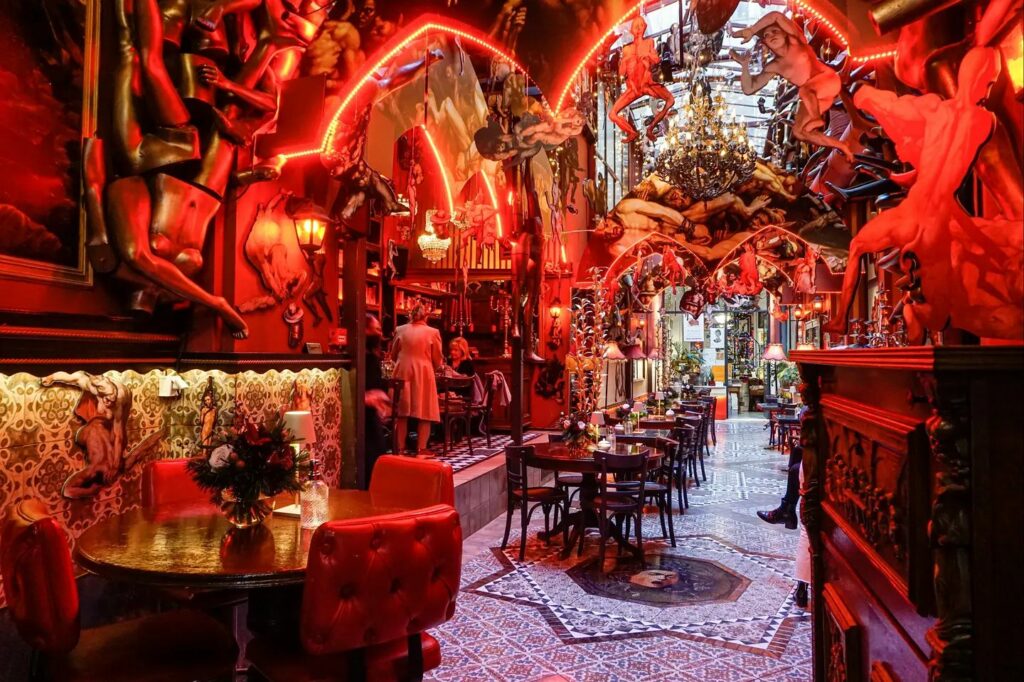 Το συγκεκριμένο all day μαγαζί μπορεί να έχει συνθέσει το όνομα του με την πιο χαρούμενη εποχή του χρόνου, τα Χριστούγεννα, όμως η ατμόσφαιρά του κάθε άλλο παρά χριστουγεννιάτικη είναι. Το Noel είναι βγαλμένο από μια άλλη εποχή, πιο ρετρό και -μετά από την πρόσφατή του ανακαίνιση- πιο σκοτεινή θα λέγαμε. Αντλεί την έμπνευσή του από την Κόλαση του Δάντη και παίζει με τα σκούρα χρώματα, τα vintage έπιπλα, τους επιβλητικούς πολυελέους που κοσμούν την στοά Κουρτάκη και τους εντυπωσιακούς κλασικούς πίνακες. Με λίγα λόγια είναι ένα κινηματογραφικό σκηνικό άλλης εποχής όπου μπορείτε να απολαύσετε τον καφέ, το φαγητό – διαθέτει ένα πλούσιο και χορταστικό μενού – και το ποτό σας.