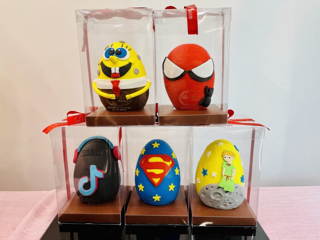 Σε αυτό το ζαχαροπλαστείο της Καλλιθέας θα βρείτε μια πολύ μεγάλη ποικιλία από σοκολατένια αυγά – φτιαγμένα τα περισσότερα από σοκολάτα γάλακτος – διακοσμημένα με χειροποίητες κατασκευές από ζαχαρόπαστα που θα ξετρελάνουν τους λιλιπούτιους γλυκατζήδες. Από Μικρό Πρίγκιπα, Spiderman και Χάρι Πότερ μέχρι Πέππα το γουρουνάκι και Hello Kitty.  Δημοσθένους 149, Καλλιθέα, τηλ. 2167006518