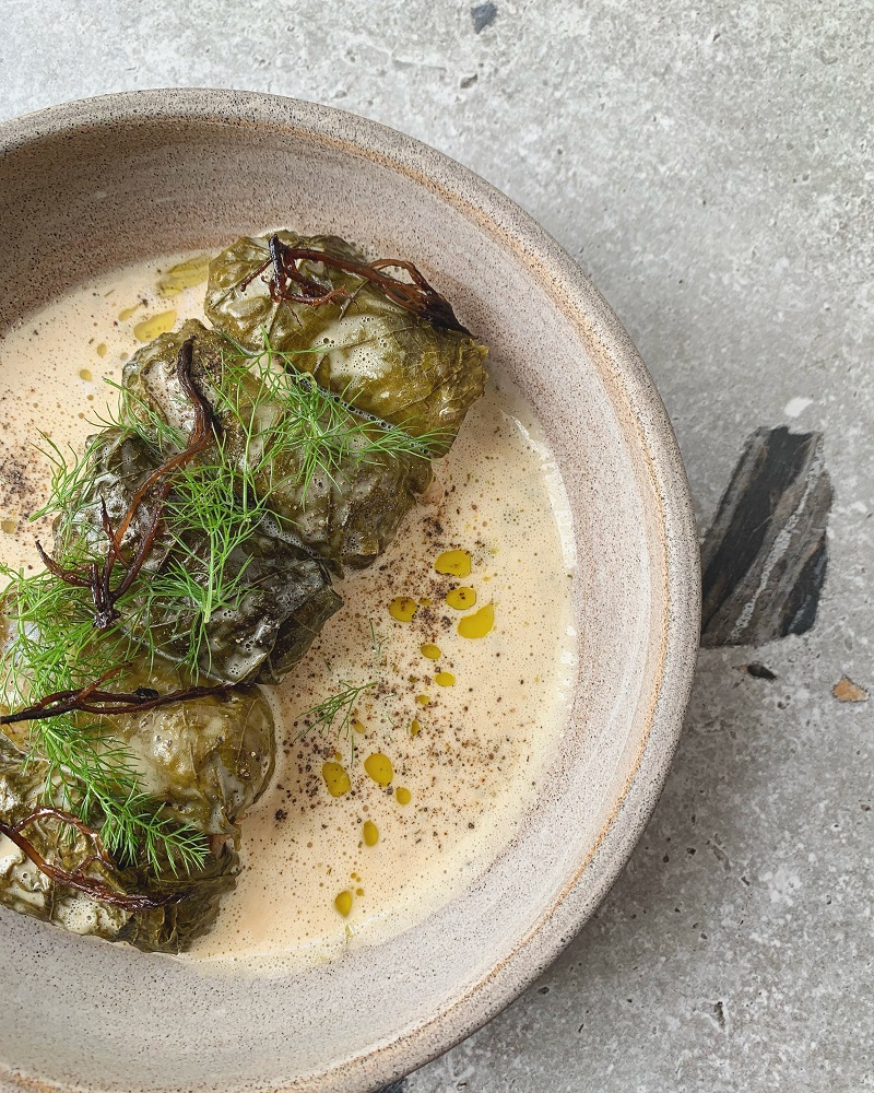 Όσο για τα σκεύη που χρησιμοποιούν για το σερβίρισμα των πιάτων, είναι όλα κεραμικά και φτιαγμένα στο χέρι. Ο Κωνσταντίνος βρίσκεται σε επαφή με 3-4 καλλιτέχνες και στον συγκεκριμένο τομέα ώστε να πετύχει ακριβώς αυτό που θέλει στο αισθητικό κομμάτι του σερβιρίσματος του φαγητού. Στο πλαίσιο της κυκλικής οικονομίας και εδώ, κρατούν τα σπασμένα κεραμικά και δεν τα πετούν, με απώτερο στόχο στο μέλλον να φτιάξουν -κατά πάσα πιθανότητα- ένα ιδιαίτερο ψηφιδωτό για τη διακόσμηση του χώρου.