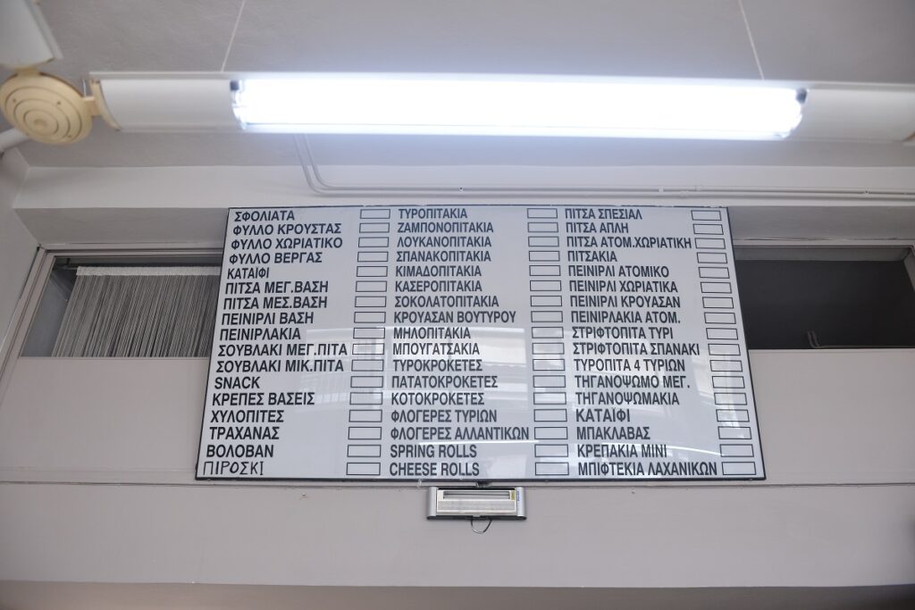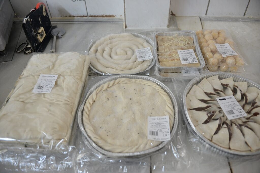 Στους μεγάλους καταψύκτες, που υπάρχουν στο μαγαζί, είδαμε επίσης τα κρητικά λυχναράκια με γλυκιά μυζύθρα, φλογέρες, τυροκροκέτες, αλλά και μπουγάτσα ή μπουγατσάκια με κρέμα και κρουασάν με σοκολάτα. Ετοιμάζουν ακόμη και σαραγλάκια και μίνι κανταϊφάκια, που τα βρίσκουμε και αυτά σε κατεψυγμένη μορφή, με οδηγίες στη συσκευασία για το ψήσιμο και μετέπειτα σιρόπιασμά τους.