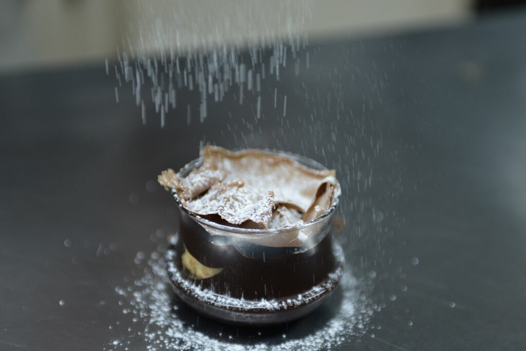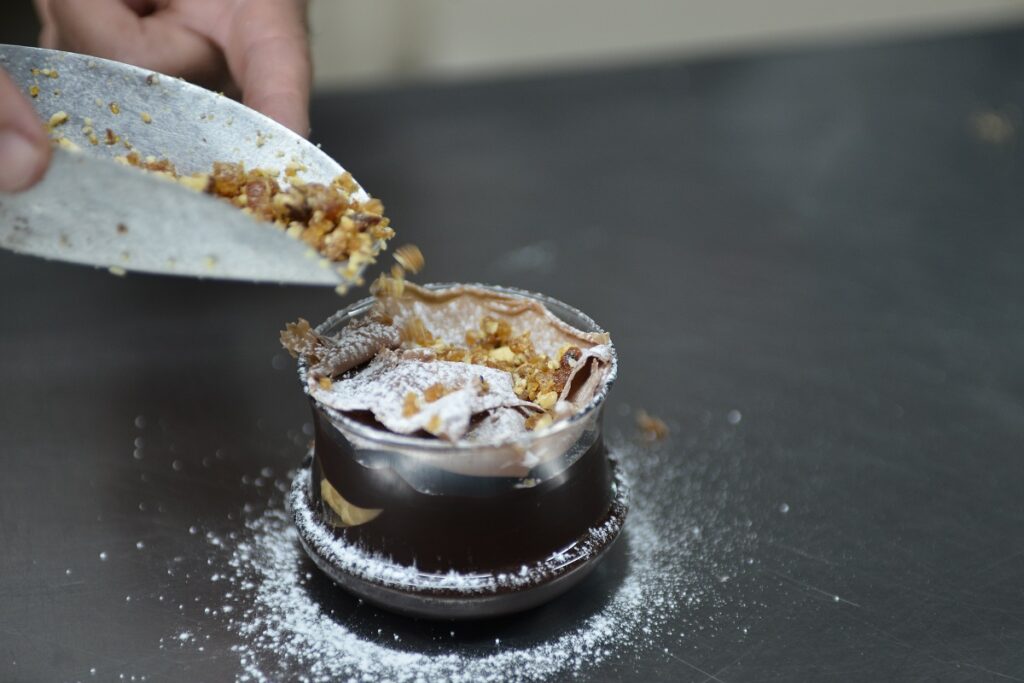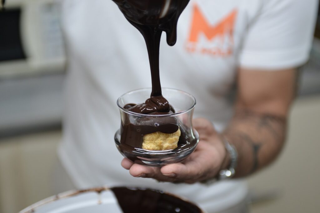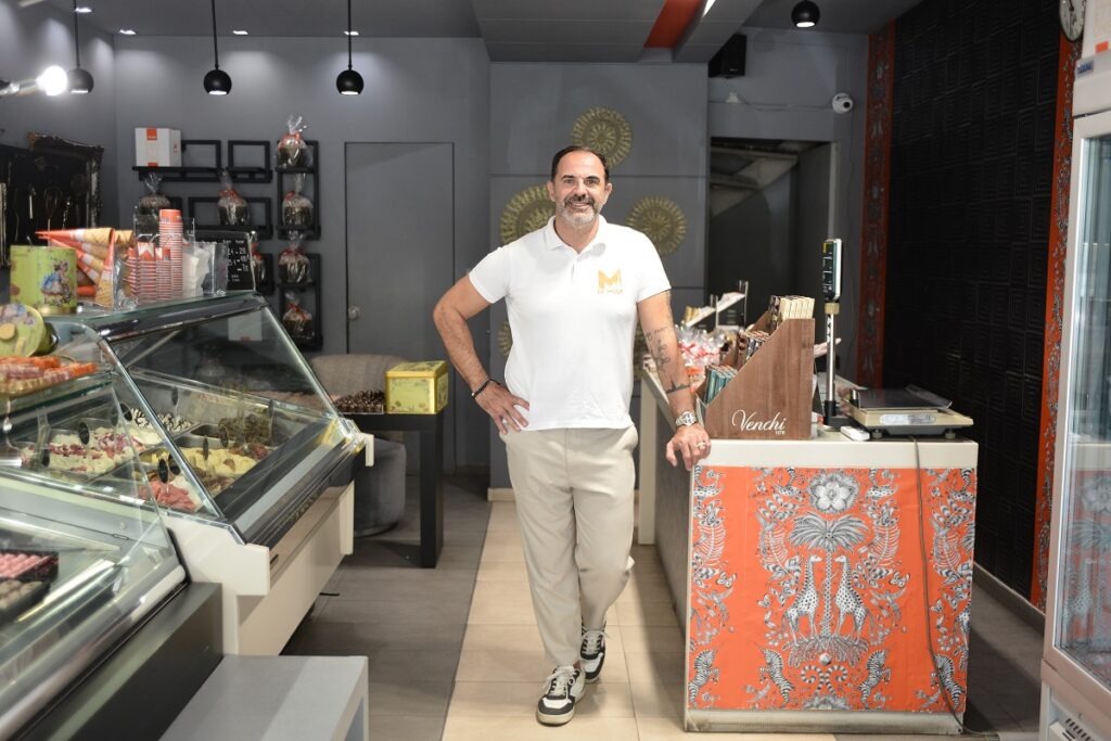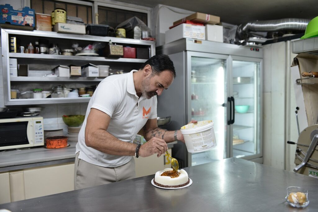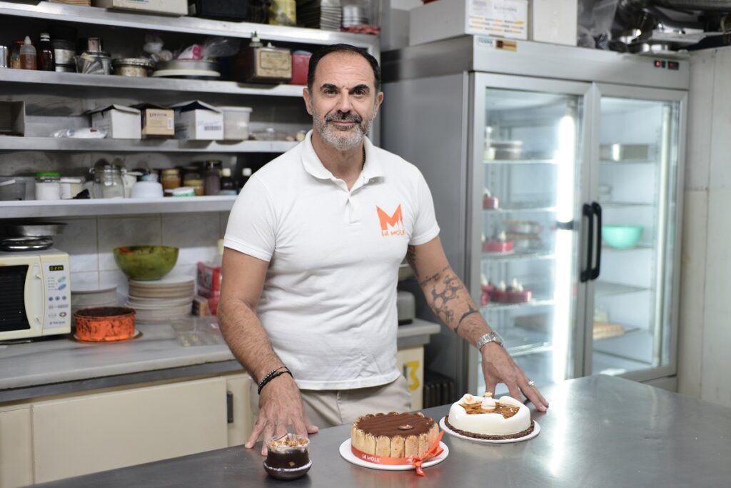 Έτσι, λοιπόν, ένα πρωινό επισκέφθηκα (μετά από ομολογουμένως αρκετά χρόνια) ξανά το La Mole για να γνωρίσω τον Marco Mure, τον επικεφαλής και pastry chef του, να μπω στο εργαστήριό του με τον φωτογράφο μας και να τον απολαύσουμε να φτιάχνει τις υπέροχες δημιουργίες του. Όπως μας είπε ο ίδιος, είναι one man show, δηλαδή περνάνε όλα από τα χέρια του, όχι επειδή δεν βρίσκει βοηθό, αλλά από καθαρή επιλογή του. Ο μόνος βοηθός του είναι η κόρη του, στην εξυπηρέτηση των πελατών. Όπως μου είπε, στην τέχνη της ιταλικής ζαχαροπλαστικής μυήθηκε από τους γονείς του, που είχαν για χρόνια ζαχαροπλαστείο με κλασικά ιταλικά γλυκά στο Τορίνο. Από εκεί προέρχεται και το όνομα του μαγαζιού La Mole, που σημαίνει «ο πύργος» και αναφέρεται στον διάσημο πύργο του Τορίνο, που υπάρχει και σε φωτογραφία μέσα στο κατάστημα.
