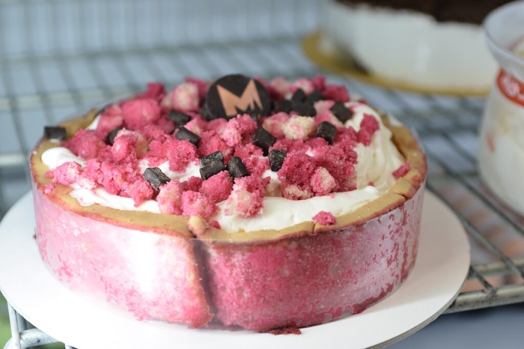 Στους καταψύκτες του είδαμε και παγωτίνια δικής του παραγωγής, καθώς και τα πολύχρωμα και αγαπημένα μας macaron, αλλά και τούρτες παγωτό σε αρκετές παραλλαγές. Ξεχωρίσαμε την εντυπωσιακή σε ροζ χρώμα zuppa inglese (με παντεσπάνι ποτισμένο με το λικέρ αλκέρμες), αλλά και την τούρτα παγωτό cheesecake με φράουλα.