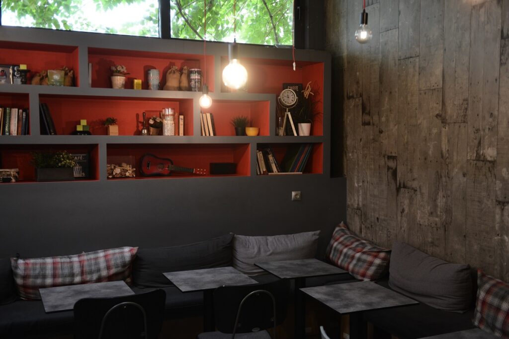 Αυτό που δεν φαντάζεται κανείς με την πρώτη ματιά είναι ότι στο βάθος του στενόμακρου μαγαζιού, υπάρχει ένας μοντέρνος χώρος, σε industrial αισθητική, με λίγα τραπέζια και καναπεδάκια, όπου μπορεί κανείς να απολαύσει ό,τι βγαίνει από την κουζίνα.