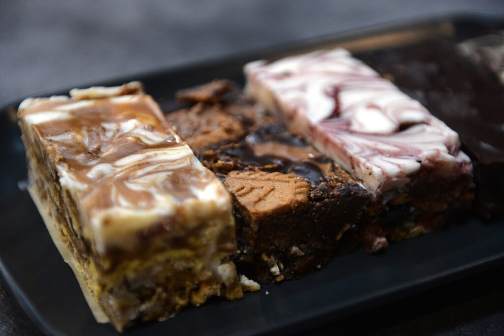 Εκτός από αλμυρά εδέσματα, έχουν και αρκετές γλυκές επιλογές για να συνοδεύσουν τον καλό καφέ τους και τα 60 διαφορετικά είδη τσαγιού και αφεψημάτων. Πολύ δημοφιλείς είναι οι σοκολατένιες μπάρες που φτιάχνει μόνη της η Έλλη σε μεγάλα ταψιά και έπειτα κόβει σε γενναίες δόσεις και τις οποίες λατρέψαμε κι εμείς. Είναι όντως πολύ ιδιαίτερες και εντελώς δικής της έμπνευσης. Φτιάχνει, επίσης, κέικ αμερικάνικου τύπου σε στρώσεις, cheesecakes (όπως το πολύ δημοφιλές στα social με την μπισκοτόκρεμα Lotus Biscoff) αλλά και soft cookies, ενώ ο Noel φτιάχνει ένα πραγματικά εθιστικό brownie.