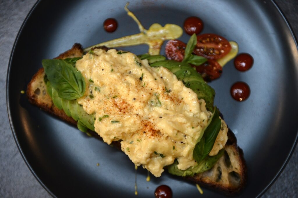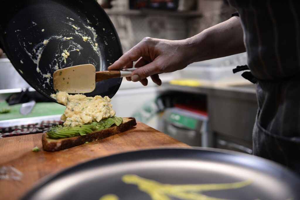 Όσο για τις προτάσεις για brunch ξεχωρίσαμε τα scrambed eggs που βάζει πάνω σε φρυγανισμένο ψωμί, το οποίο έχει επάνω του μαλακές φέτες από αβοκάντο και μάλιστα ζητήσαμε και τη συνταγή που μπορείτε να δείτε στο τέλος του κειμένου! Ακόμη, φτιάχνουν ιδιαίτερες ομελέτες, αλλά και τα eggs «Constantinople» όπως τα βάφτισαν οι ίδιοι, που είναι 2 αυγά ποσέ, σερβιρισμένα με γιαούρτι με μέντα, άνηθο και σκόρδο και σως βουτύρου, με μπούκοβο, κύμινο και καπνιστή πάπρικα. Σερβίρονται με μια φέτα προζυμένιου ψωμιού, το οποίο είναι σωταρισμένο σε παρθένο ελαιόλαδο.