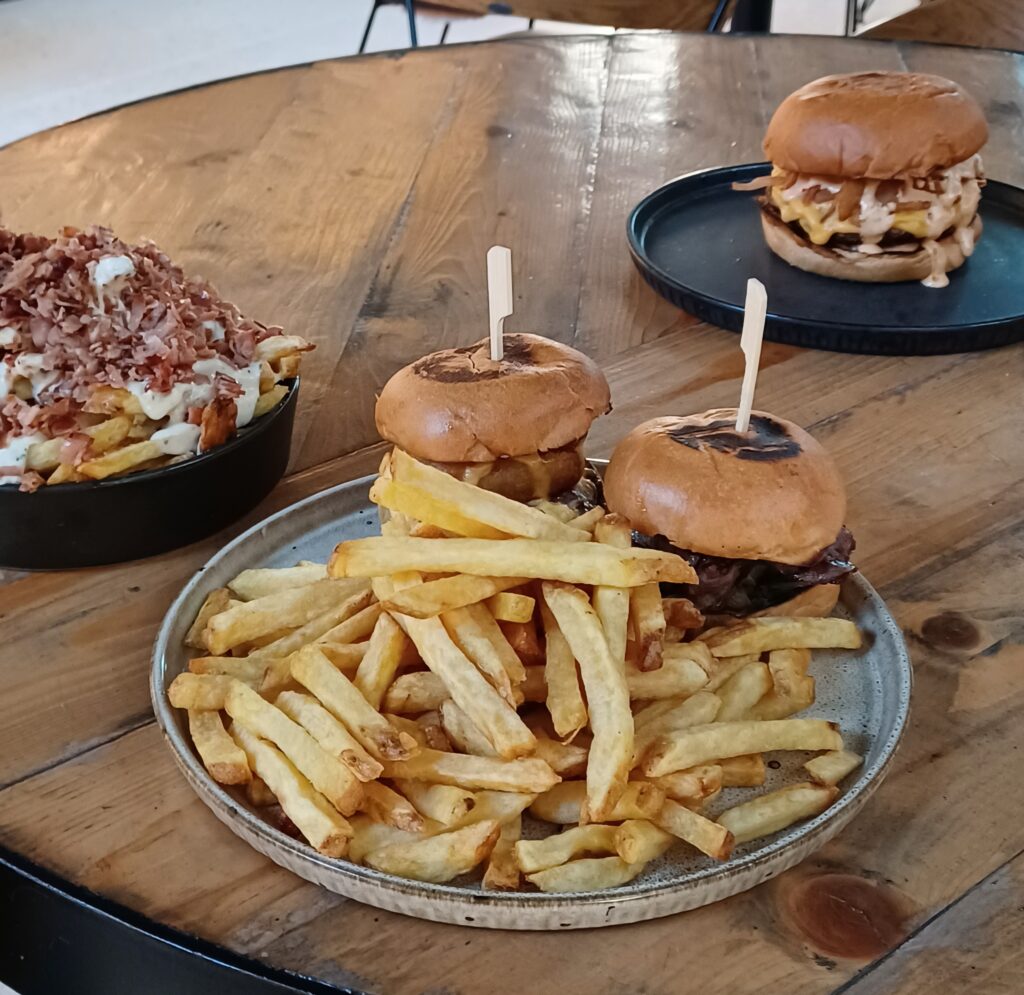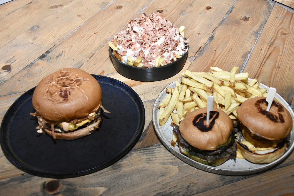 Στο Juicy Grill μας ετοίμασαν το καινούργιο μπέργκερ που βγήκε τώρα στο νέο μενού που είναι δυο μίνι sliders με Black Angus κρέας που σερβίρεται με 2 διαφορετικές γεύσεις στο ίδιο πιάτο. Και ένα κλασικό μπέργκερ που μετρά 7-8 χρόνια στο μαγαζί και το οποίο είναι πολύ δημοφιλές. Ο λόγος για το Bill Murray με μπιφτέκι μοσχάρι γεμιστό με cheddar, chipotle aioli mayo, iceberg, ντομάτα, και χειροποίητα τηγανητά onion strings.