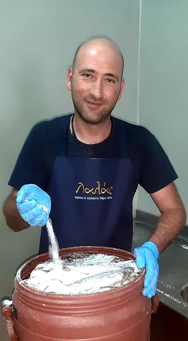 Τα αδέλφια Αλέκος και Γιάννης Ταχλιαμπούρης, τρίτη γενιά ιχθυέμπορων, μετά τον παππού και τον πατέρα τους, αγάπησαν πολύ τη θάλασσα και όλα τα καλά που τους προσφέρει. Ετσι τα τελευταία οκτώ χρόνια παράγουν πιστοποιημένα αλίπαστα ψάρια, κάτι που τόσα χρόνια ασκούσαν ερασιτεχνικά. Οι ίδιοι μας εξηγούν: «Από τον παππού και τον πατέρα μας μάθαμε όλα όσα γνωρίζουμε για τα ψάρια και την παραγωγή αλίπαστων. Και έτσι μεγαλώσαμε. Μέσα στη θάλασσα και τον πλούτο της! Στο νησί μας, την πανέμορφη Λέρο, “Λαλά” αποκαλούσαν οι ντόπιοι τον πατέρα μας, γιατί γυρνούσε στις γειτονιές του νησιού μας και διαλαλούσε τα φρέσκα ψάρια του. Αργότερα, μαζί με τον παππού μας άνοιξαν το πρώτο ιχθυοπωλείο στο νησί και προμηθεύονταν τα φρέσκα ψάρια από τους ντόπιους ψαράδες. Με την ίδια αγάπη επεκτείναμε τη δραστηριότητά μας ιδρύοντας τη βιοτεχνία και συνεχίζουμε το εμπόριο φρέσκων ψαριών διατηρώντας το ιχθυοπωλείο της οικογένειάς μας. Εδώ γεννηθήκαμε. Και κάθε αναποδιά την προσπερνάμε, την ξεχνάμε. Μας αποζημιώνει η ξεχωριστή ομορφιά του νησιού μας, μας ξεκουράζει. Τη θάλασσα τη σεβόμαστε. Και όσο τη σεβόμαστε τόσο μας ανταμείβει. Κι αν αναλογιστεί κανείς την παραδοσιακή διαδικασία που οδηγεί στο τελικό προϊόν αντιλαμβάνεται πως πρόκειται μια δύσκολη δουλειά. Για να την κάνεις πρέπει να την αγαπάς πολύ. Δύσκολη η δουλειά μας, αλλά αγαπάμε τούτο τον τόπο».