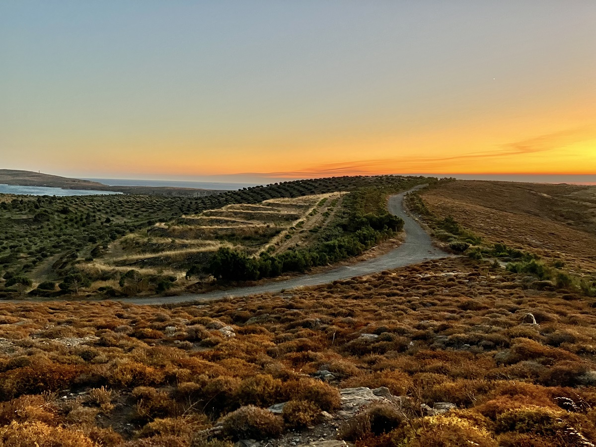Έτσι λοιπόν, έχουμε μισό νησί πράσινο στις αποχρώσεις της ελιάς και μισό καφετί στις αποχρώσεις της πέτρας. Ή τουλάχιστον μέχρι πρότινος, διότι τα τελευταία 15 χρόνια με τον ελαιώνα που αναπτύσσεται στη χερσόνησο του κτήματος Φάρος, τα χρώματα έχουν αρχίσει να αλλάζουν. Όλο το τοπίο μεταμορφώνεται και ζωντανεύει ξανά, εκατομμύρια χρόνια μετά.