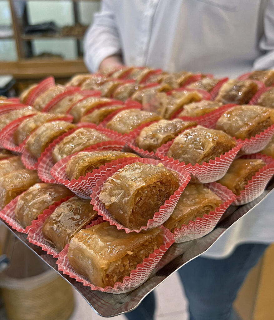 Ό,τι πιο κοντινό σε γεύση από Πόλη. Ολόφρεσκοι μπακλαβάδες, με εξαιρετικής ποιότητας βούτυρο, αραχνοΰφαντο φύλλο, ελαφρύ σιρόπι και μπόλικους ξηρούς καρπούς που μοσχοβολάνε. Εκτός από τους κλασικούς με καρύδι και φιστίκι, αξίζει να δοκιμάσετε τον μπακλαβά που φτιάχνεται με φύλλα βουτηγμένα σε σοκολάτα και το «μύδι» ένα μπακλαβαδάκι σε μέγεθος μπουκιάς γεμάτο με βουβαλίσιο καϊμάκι και φιστίκι.