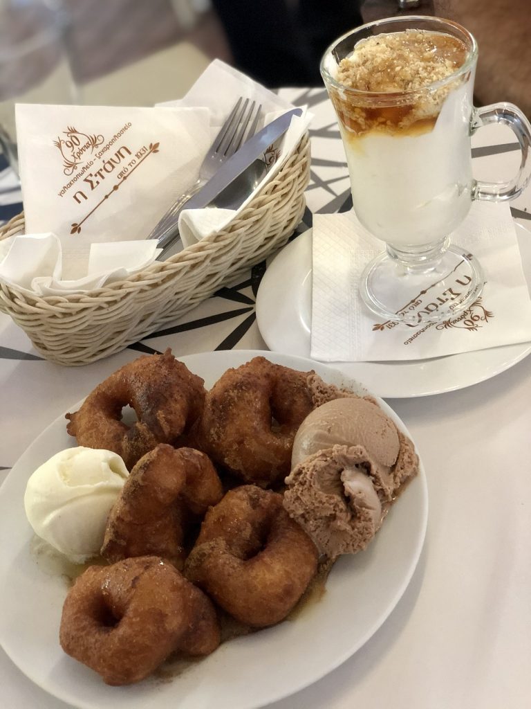 Στη Στάνη βρίσκουμε αγαπημένα παραδοσιακά γλυκά που θυμίζουν άλλη δεκαετία τόσο οπτικά, όσο και στη γεύση. Κλασική σοκολατίνα, πάστα αμυγδάλου, κρέμες και ρυζόγαλα, μουσταλευριά και πάει λέγοντας. Τρία όμως είναι τα πιο πολυφωτογραφημένα. Το ανθόγαλο με το μέλι και τα καρύδια (ανάλαφρη μους γάλακτος που για ένα ποτήρι απαιτεί ενάμιση λίτρο γάλα), ελληνικό γιαούρτι με μέλι και καρύδια και λουκουμάδες (αυτοί με την τρύπα στη μέση παρακαλώ) με παγωτό. Και τι παγωτό είναι αυτό. Το καϊμάκι ελαφρώς μαστιχωτό με απόσταγμα μαστίχας πρώτης ποιότητας και το παγωτό βανίλιας πολύ πολύ νόστιμο. Δεν θυμίζει σε τίποτα κανένα άλλο παγωτό βανίλιας που έχω δοκιμάσει.