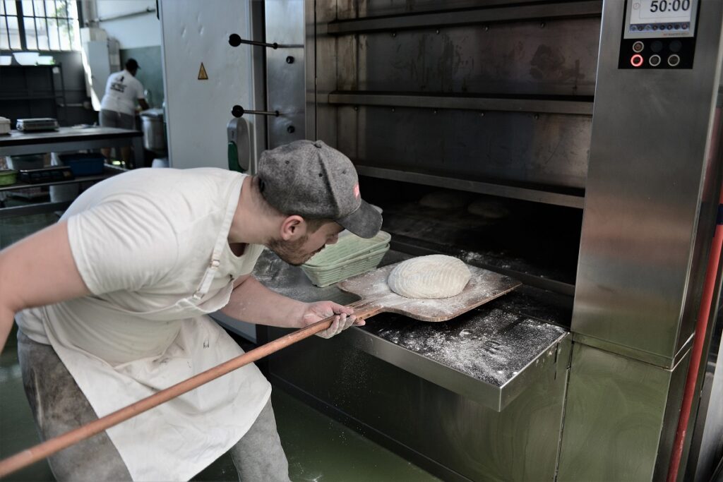 «Για να κάνεις καλό ψωμί χρειάζεσαι αρχικά καλή πρώτη ύλη και πολύ χρόνο», λέει χαρακτηριστικά η Ελισάβετ και μας δείχνει ένα από τα σακιά με δίκοκκο αλεύρι ολικής, μικρού παραγωγού από το Κιλκίς. Στον τοίχο βλέπουμε φωτογραφίες από σιταροχώραφα κι εκείνη μας λέει με περηφάνια ότι πλέον έχουν αποκτήσει τη δική τους έκταση στο Κανδήλι Ευβοίας και ανυπομονεί να έρθει η στιγμή που θα πάρουν τον μύλο τους και θα δημιουργήσουν το δικό τους αλεύρι, στηρίζοντας έτσι, όλον τον κύκλο της βιολογικής αλυσίδας. Όσο για τον χρόνο, φαίνεται πως ξέρει να κάνει υπομονή, αφού για να έχει το επιθυμητό αποτέλεσμα στα ψωμιά της χρειάζονται δύο ημέρες.