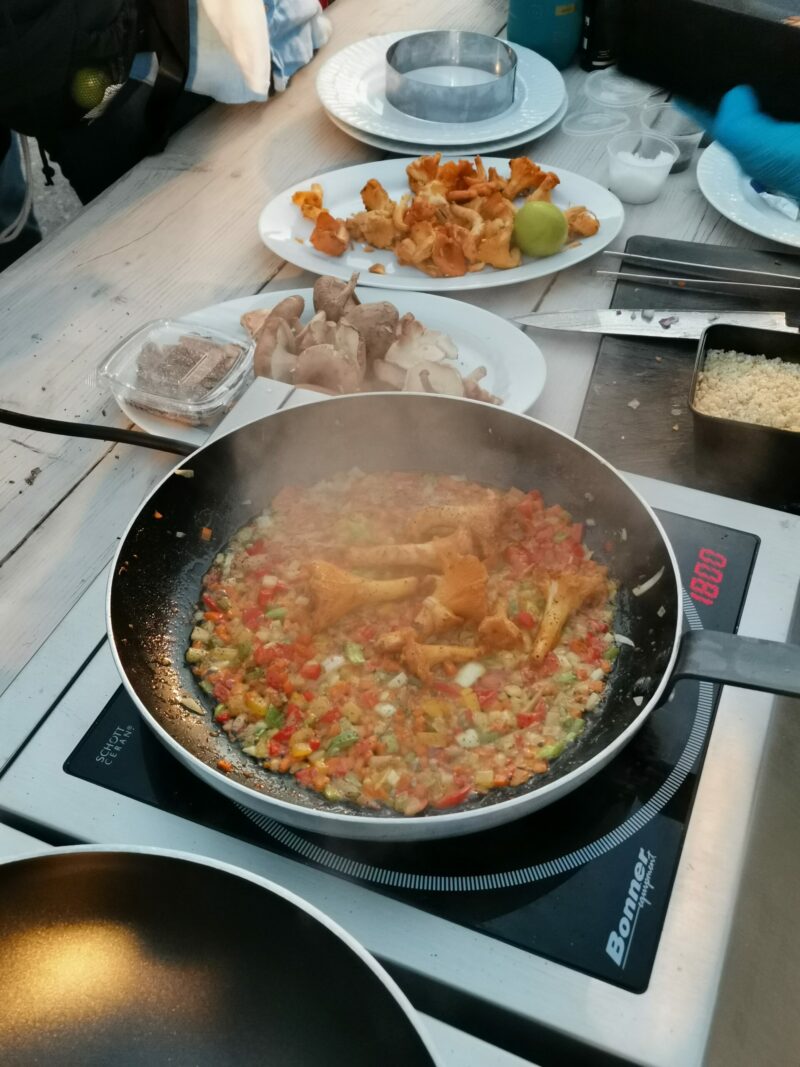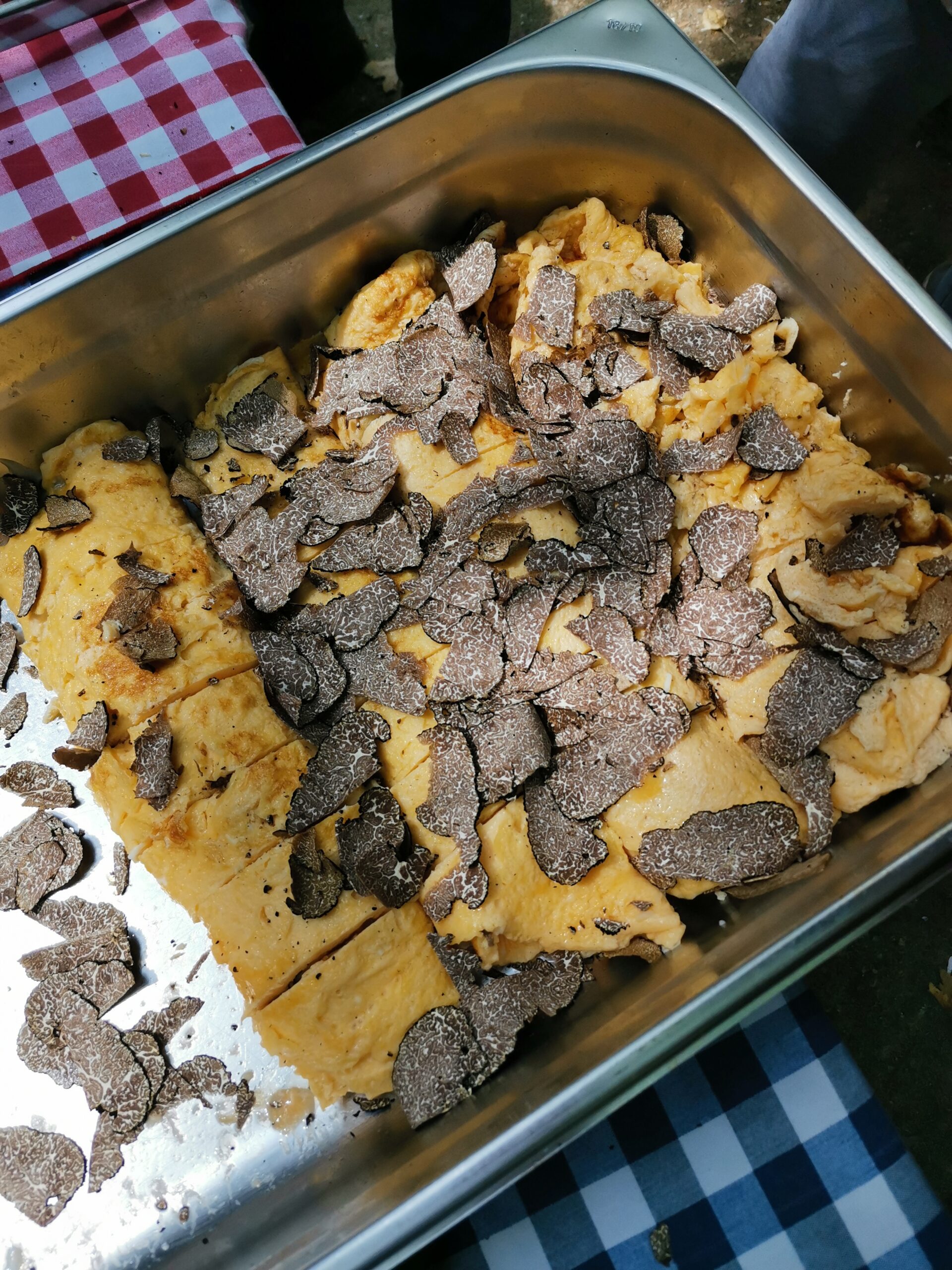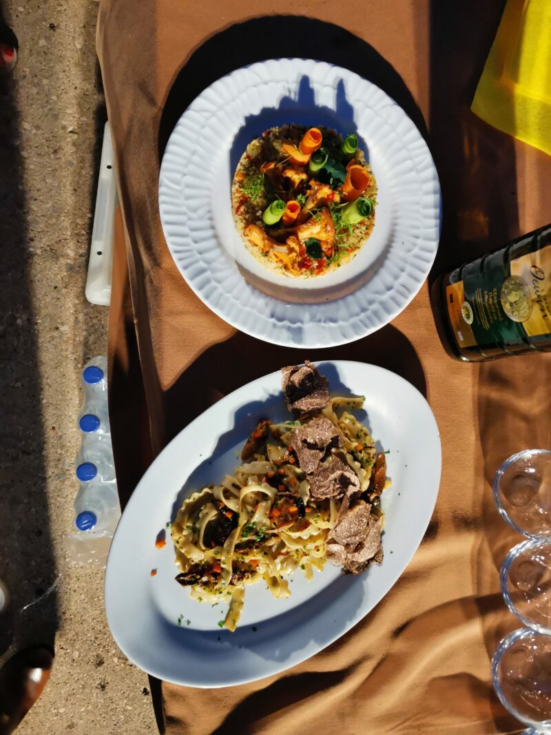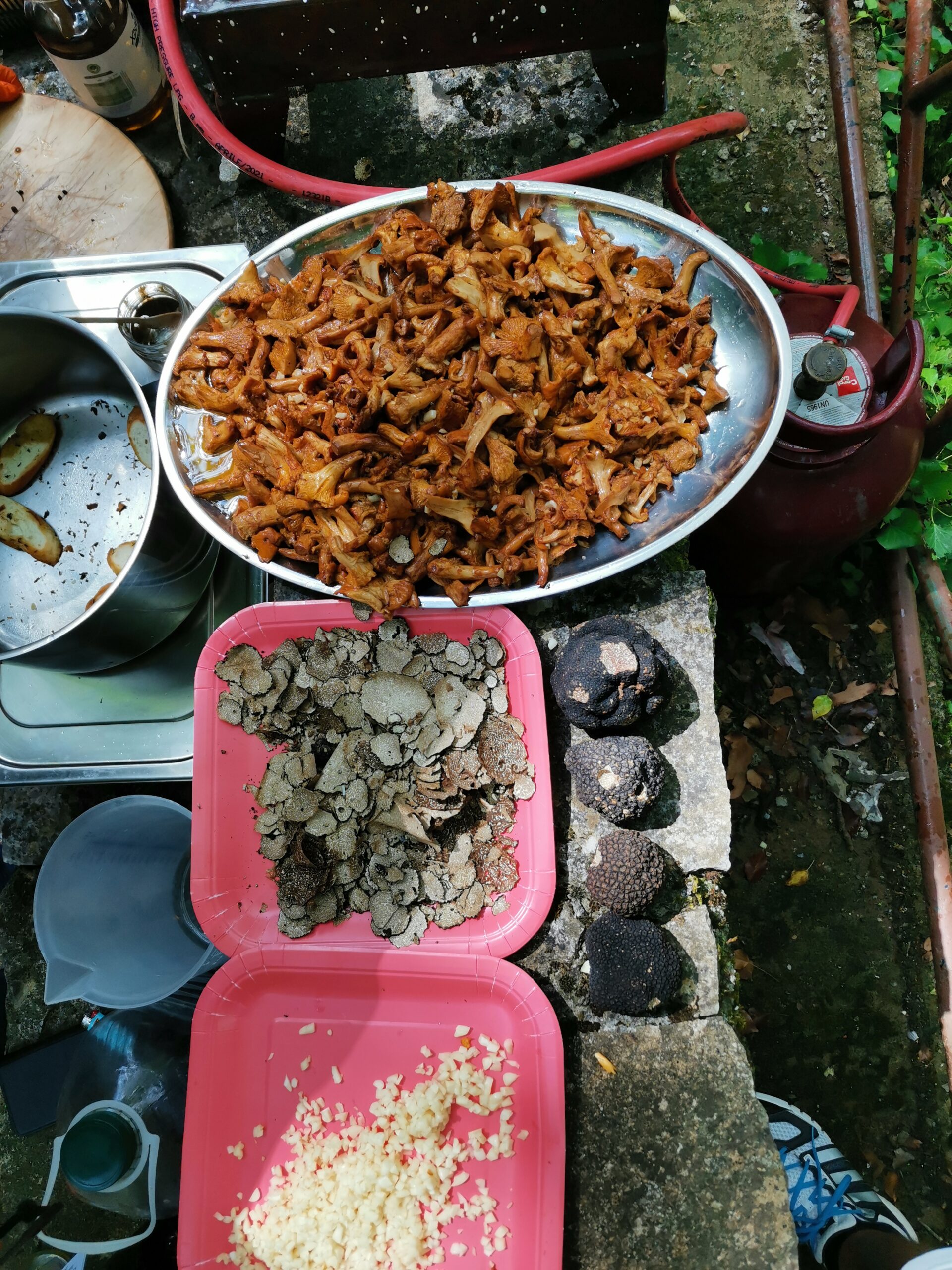 Μετά το κυνήγι, οι τρούφες μεταφέρονται από τα χέρια μας σε τηγάνια με ελαιόλαδο που κοχλάζει, αφού πρώτα καθαριστούν σε μία υπαίθρια μικρή κουζίνα ανάμεσα στα καταπράσινα οξυγονούχα δέντρα και έλατα. Μία ξεχωριστή εμπειρία, η οποία έχει γεύση και άρωμα φρέσκιας τρούφας σε κάθε της πιάτο. Από την αλλειμένη σε ελαφρώς τηγανητό ψωμί μπρουσκέτα με βούτυρο τρούφας έως τα ζυμαρικά με μανιτάρια με ενδιάμεση στάση τη χειροποίητη χορταστική ομελέτα που η τρούφα είναι φυσικά ο απόλυτος πρωταγωνιστής. Μία βιωματική εμπειρία υψηλών συναισθημάτων έξω από τα Άνω Δολιανά.