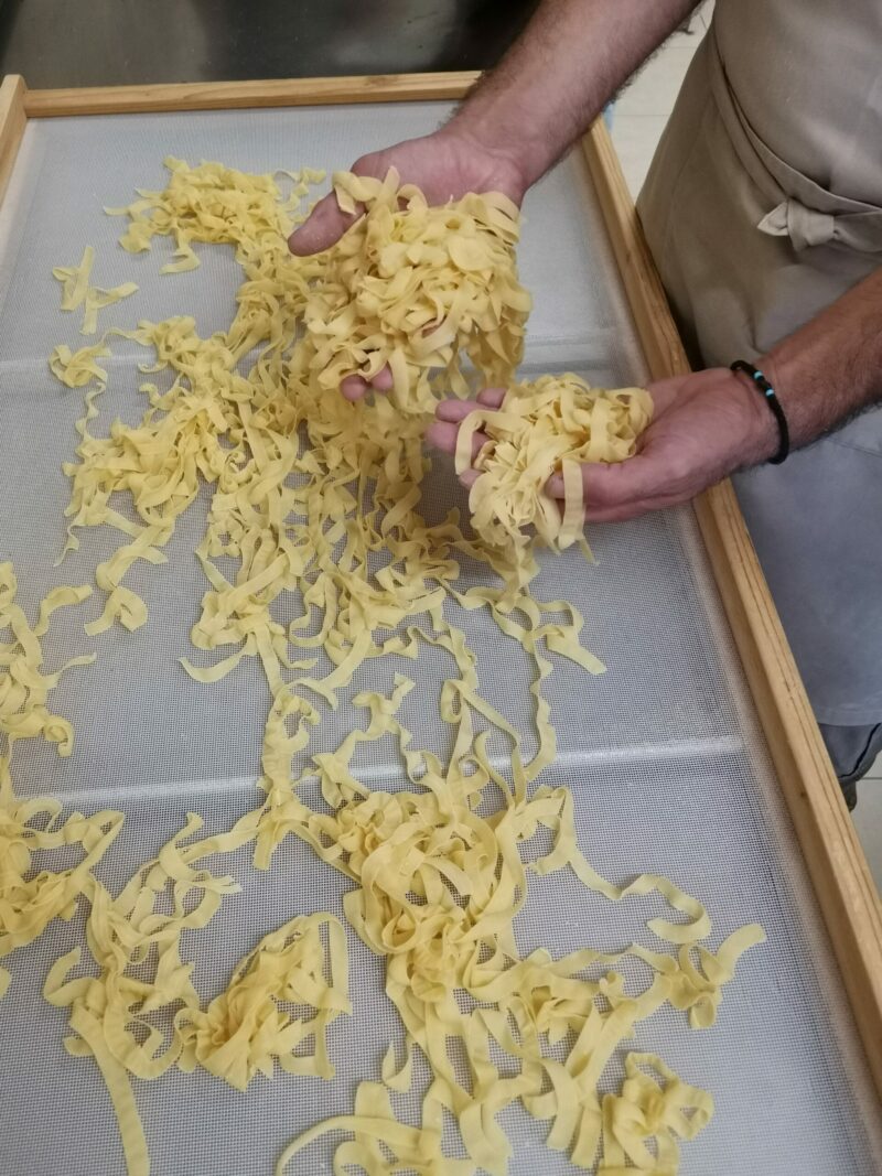 Στο δρόμο προς τον Πάρνωνα, στο χωριό του Αγίου Πέτρου, σε μία κάθετη οδό κατά μήκος της κουκλίστικης πλατείας, συναντάμε το εργαστήρι παραγωγής ζυμαρικών «Μαλεβός» της Μαρίας και του Δημήτρη Παινέση. Ένα ζευγάρι που αξιοποιεί ντόπιες πρώτες ύλες για να δημιουργήσει χειροποίητα ζυμαρικά, χυλοπίτες και χυλοπιτάκι. Το μυστικό της ξεχωριστής τους γεύσης βρίσκεται στη σωστή αναλογία αυγού και αλευριού, τα οποία αναμειγνύονται στο σύγχρονο μηχάνημα αλέσεως του εργαστηρίου. Δύο φορές. Για να αποκτήσουν καλύτερη και πιο μαλακή υφή και σωστό σχήμα. Η διαδικασία παραγωγής παραμένει ίδια για κάθε είδος ζυμαρικών. Αυτό που κάνει τη διαφορά είναι το μοτέρ κοπής, από το οποίο προκύπτουν είτε οι χορταστικές χυλοπίτες είτε το μικροσκοπικό χυλοπιτάκι, που μπορούμε να απολαύσουμε ακόμα και με λίγο τριμμένο – ντόπιο – φυσικά τυρί. Ο σεφ Δημήτρης μας επέτρεψε να εμπλακούμε και εμείς στη διαδικασία. Με τις πολύτιμες συμβουλές του, όλα πήγαν καλά, τα αβγά και – ο πάγος της πρώτης γνωριμίας – έσπασαν σε λίγα λεπτά και εμείς απολαύσαμε την αρκαδική φιλοξενία και ευρεσιτεχνία στο έπακρον. Εκτός από φρέσκα ζυμαρικά, μην διστάσετε να δοκιμάσετε τοπικό μέλι από έλατο, θυμάρι και καστανιά. Τα δύο πρώτα με υφή ανάλαφρη και το τελευταίο με μαστιχωτή γεμάτη γεύση που απολαμβάνει ο ουρανίσκος σε κάθε κουταλιά.