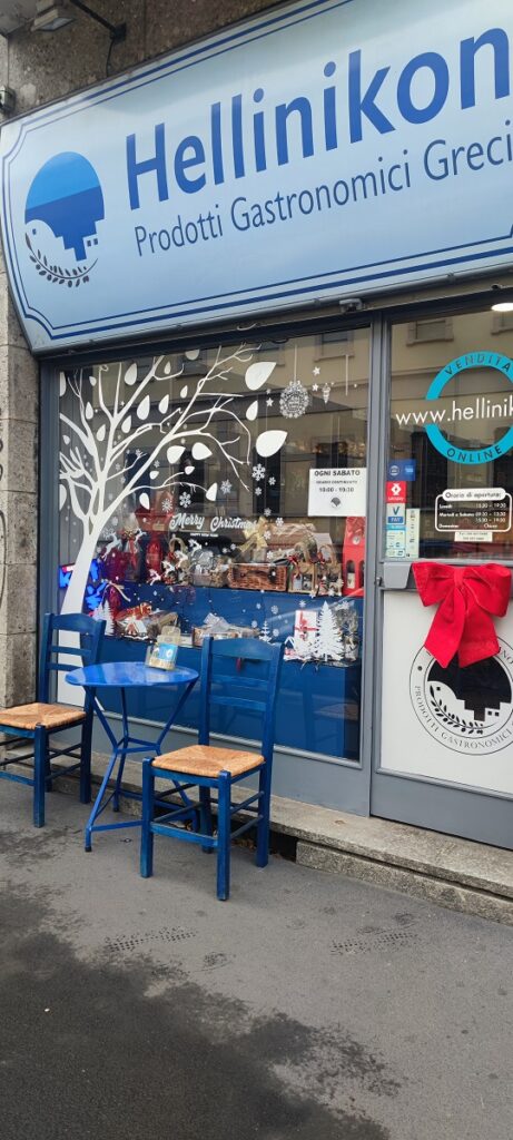 Στο «Hellinikon-Prodotti Gastronomici Greci», στο μοναδικό ελληνικό delicatessen που υπάρχει αυτή τη στιγμή όχι μόνο στο Μιλάνο αλλά και σε ολόκληρη την Ιταλία, η ελληνική παράδοση μπλέκει με τη φεστιβαλική διάθεση των γιορτών, δίνοντας από τη μια στους Έλληνες που κατοικούν εκεί νοσταλγικές γεύσεις και αρώματα από την πατρίδα και από την άλλη στους ντόπιους μερικούς ακόμα έξτρα λόγους για να γνωρίσουν και να αγαπήσουν τη χώρα μας.