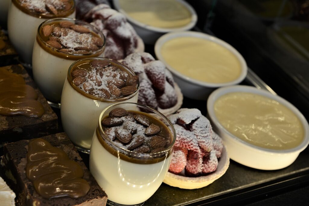 Μπορεί ο χώρος να είναι σχετικά περιορισμένος, όμως οι επιλογές σε γλυκά είναι πολλές και εναλλάσσονται καθημερινά. Δεν έχει κάποια συγκεκριμένη σπεσιαλιτέ, όπως μας είπε, όμως ο κόσμος αγαπά πολύ το σου με τις φράουλες, είτε σε οικογενειακό μέγεθος, είτε σε ατομικό, γιατί είναι πολύ ελαφρύ σαν γλυκό. Δίπλα στο σου στη βιτρίνα με τις τούρτες είδαμε την εντυπωσιακή μους σοκολάτα με καραμέλα και αλατισμένα φιστίκια, τη μους σοκολάτας γάλακτος με φράουλα, καθώς και μια νέα πρόταση τη μους γιαούρτι με τριαντάφυλλο και βατόμουρο.
