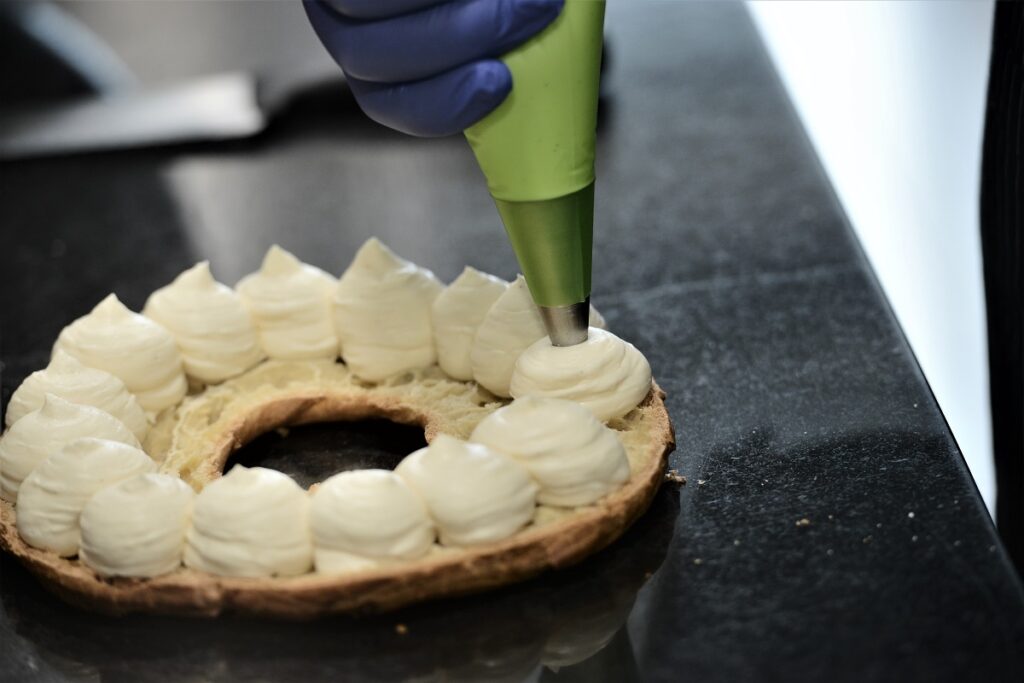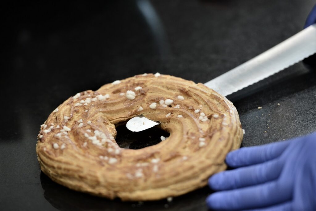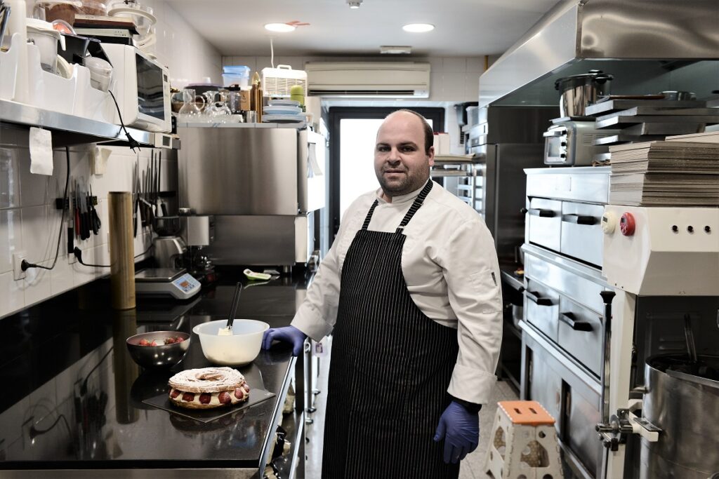 Ο Μάνος Παπαχρήστος, ιδιοκτήτης και pastry chef, πάντα χαμογελαστός, μας υποδέχθηκε στην κομψή σάλα με τα γλυκά, αλλά μας άνοιξε και το εργαστήριό του, όπου τον παρακολουθήσαμε να φτιάχνει ένα από τα πιο δημοφιλή γλυκά του καταστήματος.