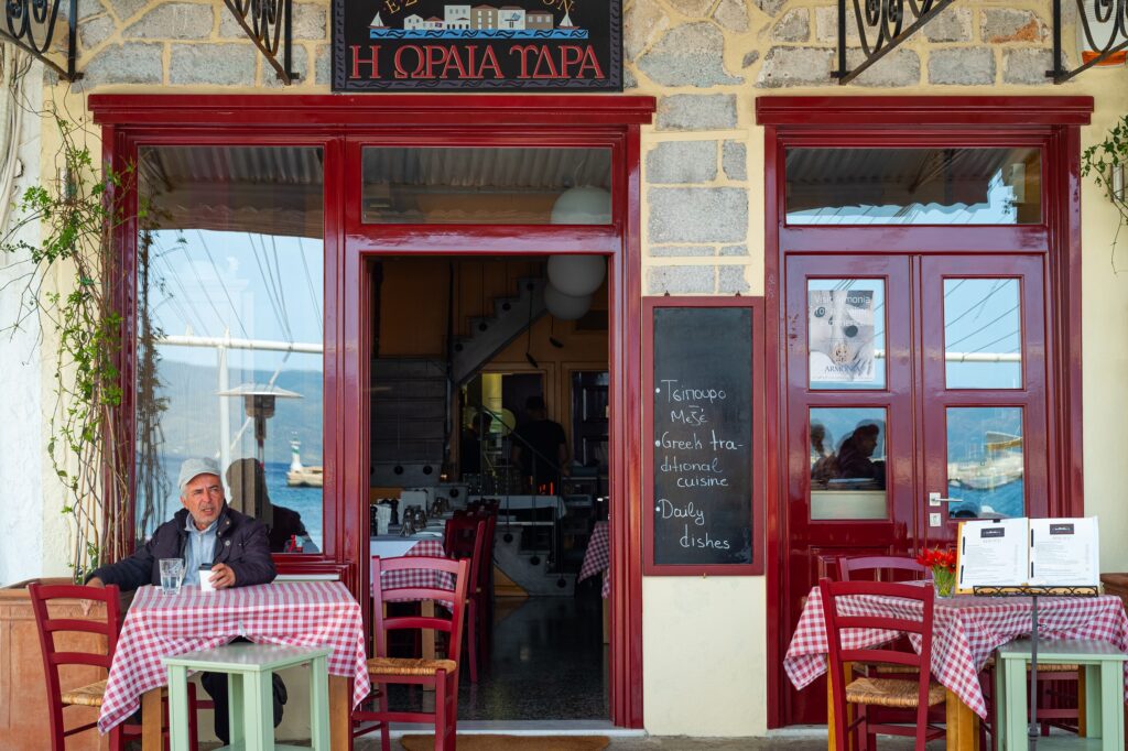 Στην ταβέρνα του Δούσκου, εκεί που στα 70s καθόταν ο Leonard Cohen, με τα μπουζούκια, το φαγητό εξακολουθεί να έχει κάτι από εκείνο τον ήχο. Μερικά πράγματα στην Ύδρα αντιστέκονται στον χρόνο με αξιοπρέπεια.