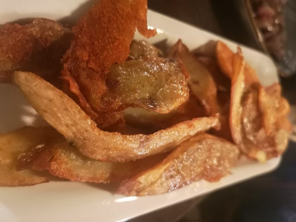 Βέβαια, δεν νοείται να έρθετε ως εδώ και να μην δοκιμάσετε τις απίθανες και τραγανές πατατόφλουδες, που ήταν μια ακόμα ευχάριστη έκπληξη στο τραπέζι μας. Όσο για το ξεκίνημα, θα πρότεινα σίγουρα την ιταλική βουτυρωμένη Burrata, με τσάτνεϊ ντομάτας και pesto λιαστής ντομάτας  και το τρυφερό Carpaccio από μοσχαρίσιο φιλέτο με flakes μαύρης τρούφας.