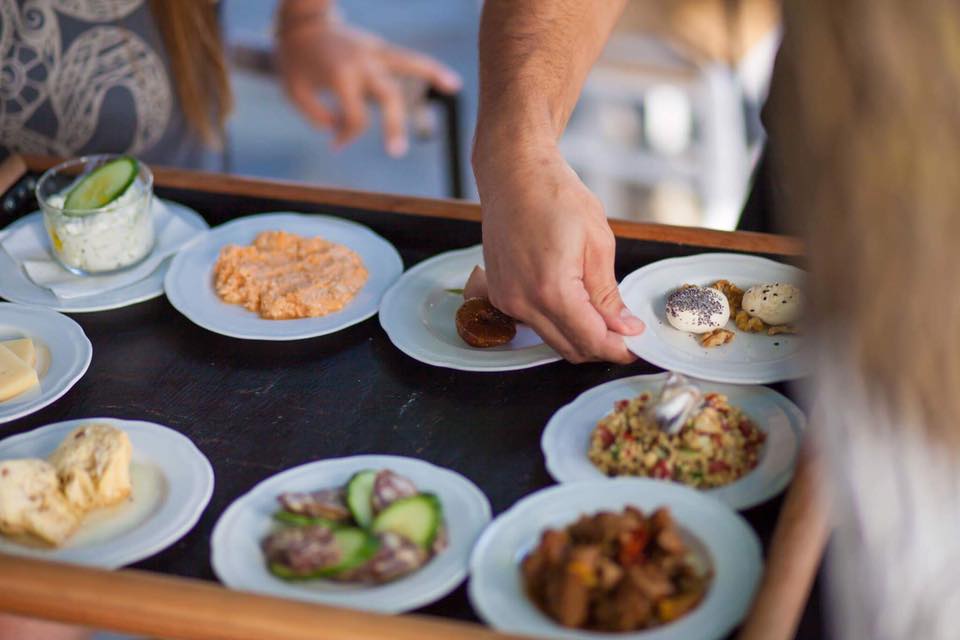 Μέσα σε λίγα λεπτά είχαμε μπροστά μας τηγανητή γραβιέρα από την Τήνο με μέλι και σουσάμι, σαλάτα με κόκκινες φακές και ταχίνι, φάβα, καπνιστή μελιταζανοσαλάτα (του ονείρου, θα προσθέσω εγώ) με φρέσκια ντοματούλα και φέτα, ζυμωτό ψωμί και ρακοτσέλο (λιμοντσέλο με ρακί). Αν και οι γεύσεις ήταν απλές, ήταν όλα καλοφτιαγμένα, νόστιμα και σε γενναίες μερίδες. Το κυριότερο ήταν όμως πως αν και αξιοποιούσαν ιδιαίτερα υλικά, όπως υπερτροφές, δεν προσπαθούσαν να είναι «δήθεν». Συνυπήρχαν απλά αρμονικά με την παραδοσιακή κουζίνα. Ήταν αυτό που λέμε «αισθάνεσαι ότι δεν σε κοροϊδεύουν».