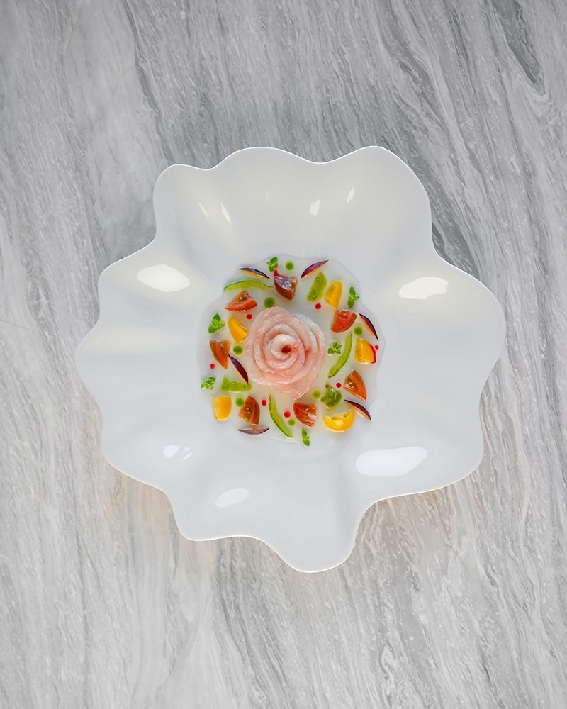 Ο σεφ Luca Piscazzi, που ανέλαβε πρόσφατα τα ηνία του εστιατορίου, έχει επιμεληθεί ένα μενού με ευρηματικά ορεκτικά που βασίζονται στις ωμές πρώτες ύλες, συνοδεύονται από φρέσκα ψάρια σε αναπάντεχους συνδυασμούς, ενώ το αρνάκι γάλακτος και το wagyu beef συμπληρώνουν τη λίστα. Τα δροσιστικά κι ανάλαφρα επιδόρπια ολοκληρώνουν την εμπειρία, δίνοντας έμφαση στα φρούτα και τα λουλούδια.