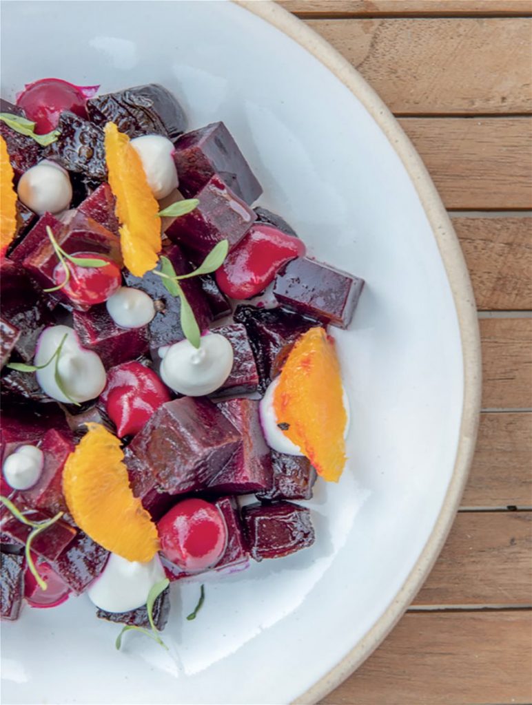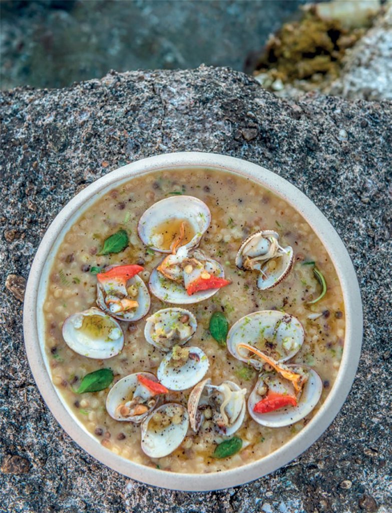 Την υλοποίηση αυτού του «παντρέματος» έχει αναλάβει ο σεφ Ηλίας Κιαζόλι, που φέτος προτείνει νέα πιάτα όπως μεσογειακή αποδομημένη τάρτα μεκρέμα τυριών, ντοματίνια, πουρέ από πιπεριά Φλωρίνης και αλμυρό μπισκότο από παλαιωμένη γραβιέρα Τήνου, λαχανοντολμάδες θαλασσινών με λάχανο σαβόι, μαγιονέζα ταραμά, χυμό από τουρσί, ντομάτα και πράσινο λάδι, fregola θαλασσινών με γυαλιστερές και κυδώνια.