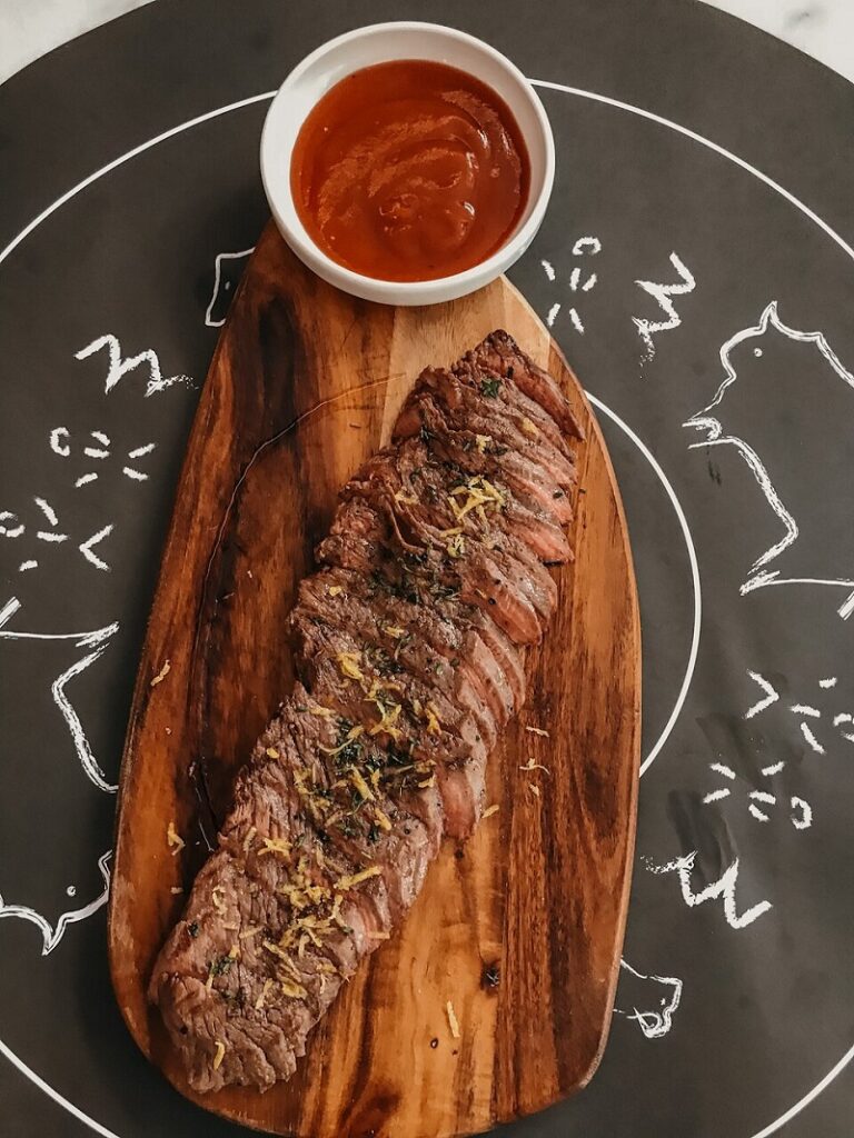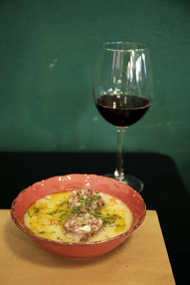 Ο σεφ και ιδιοκτήτης Κώστας Σδόγγος έφτιαξε όλο το μαγαζί μόνος του, εκτός από τα μωσαϊκά που τα επιμελήθηκε ο πατέρας του. Πράσινο σκούρο, μαύρο, εντυπωσιακοί καθρέφτες, ανοιχτή κουζίνα. Σαν να βρίσκεσαι στην κεντρική Ευρώπη. Συνέταιρός του (και επίσης σεφ) είναι ο Ευάγγελος Τσουρτσούρης. Σπιτική ελληνική κουζίνα με ποιοτικά υλικά και πιάτα που δεν διεκδικούν τον τίτλο του μοντέρνου, αλλά βρίσκονται αγκυροβολημένα στη γευστική μνήμη. Το μενού υιοθετεί τη λογική των εποχικών υλικών και αλλάζει ανάλογα με τη μέρα: γιουβαρλάκια, τζιγεροσαρμάδες, κοπανάκια κοτόπουλου με ξινό τραχανά. Μικρή λίστα κρασιών με ετικέτες από τον θεσσαλικό και τον ευρύτερο ελληνικό αμπελώνα.