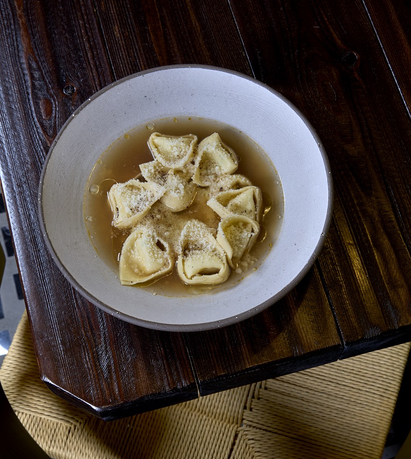 Η πρώτη φορά που δοκίμασα τα πιάτα του Giovanni ήταν στο απομακρυσμένο χωριό Λαχανιά, στη νότια Ρόδο. Μου είχε αρέσει η comfort αισθητική που παρουσίαζε την κουζίνα της χώρας του χωρίς φολκλορικά στοιχεία. Στην αθηναϊκή εκδοχή του Γιαγκουάρου του, τα πράγματα δεν αλλάζουν και πολύ. Η φιλοσοφία της κουζίνας παραμένει ίδια και ο Ιταλός μάγειρας συνεχίζει να δημιουργεί νόστιμα πιάτα σε ένα πιο εστιατορικό περιβάλλον. Η δική του πρόταση είναι ένα πιάτο που συνηθίζουν να φτιάχνουν οι νοικοκυρές στην Μπολόνια την ημέρα των Χριστουγέννων. Ζυμαρικά tortellini, γεμιστά με κιμά σε νόστιμο ζωμό από κρέατα.
