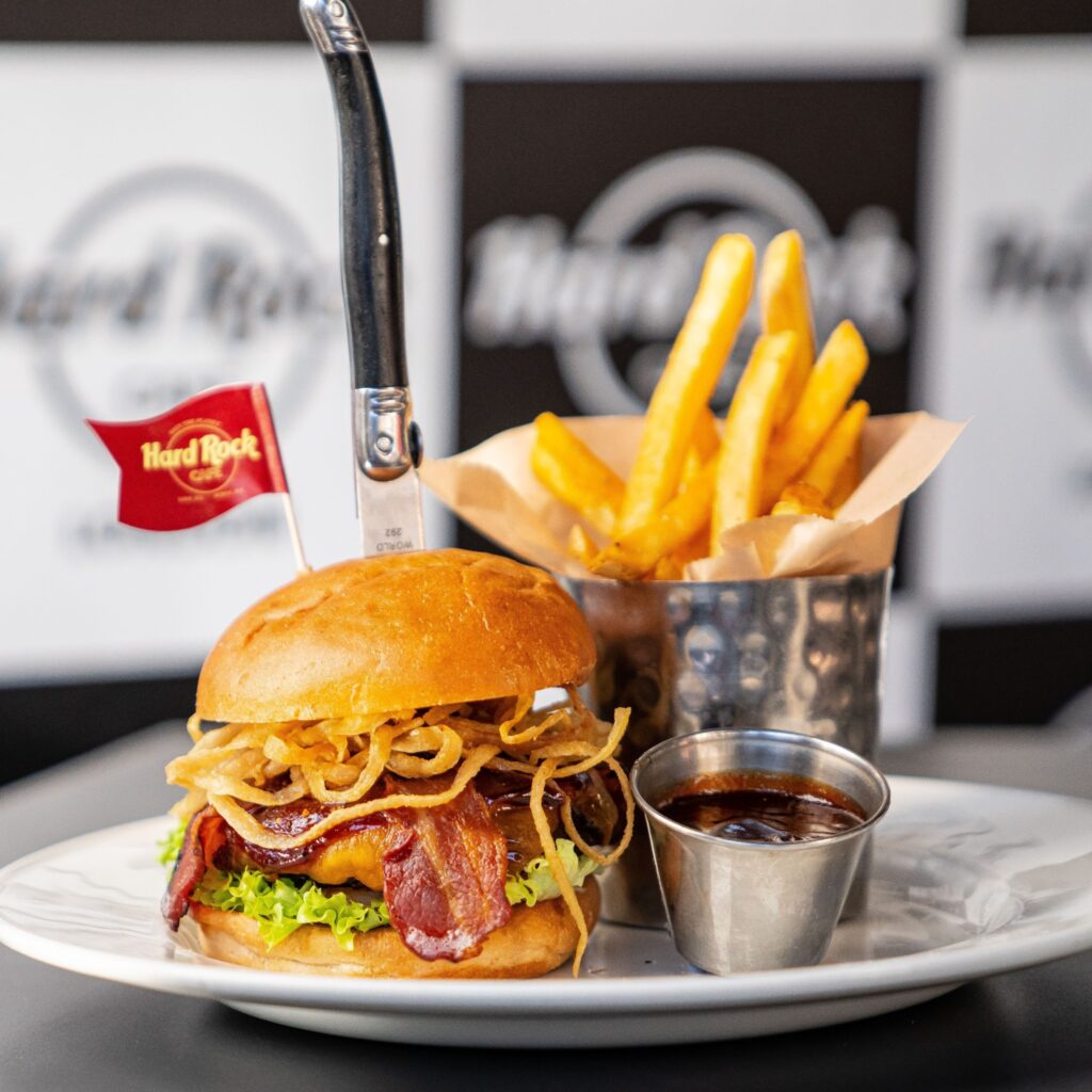 Πήγα πρόσφατα οικογενειακώς στο κατάστημα της γνωστής παγκόσμιας αλυσίδας στο Μοναστηράκι και θυμήθηκα πόσο μου αρέσουν όχι μόνο τα ζουμερά, πληθωρικά και λαχταριστά τους burgers, αλλά και η όλη ατμόσφαιρα που σου προσφέρουν, που είναι μια εμπειρία για φίλους της ροκ μουσικής και όχι μόνο. Θα ξαναπάω σίγουρα για το ζουμερότατο burger με παναρισμένο κοτόπουλο, ή το classic burger με 100% μοσχαρίσιο μπιφτέκι που εκτός από τυρί cheddar, μπέικον, ντομάτα και μαρούλι είχε και μια πολύ τραγανή ροδέλα κρεμμυδιού. Όλα γίνονται με απίθανα μαλακό και αφράτο ψωμάκι brioche και συνοδεύονται από απίθανες τηγανητές πατάτες με φλούδα. Ε.Σ.