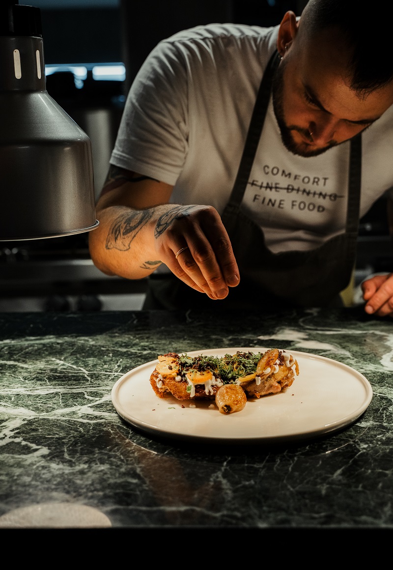 Έτσι, όταν αποφάσισε να ανοίξει το δικό του εστιατόριο στο Σαν Μιχάλη, το 2016, η φωτιά ήταν πρωταγωνίστρια. Βέβαια, τότε δεν την είχε μάθει τόσο καλά όσο τώρα που τον βρίσκουμε στο Monk’s beard, στον Νέο Κόσμο, να παίζει με αυτή άφοβα και με αγάπη. «Είναι έρωτας. Είναι ένας ζωντανός οργανισμός που θέλει να τον προσέξεις, να τον αγαπήσεις», αναφέρει. Για να φτάσει όμως σε αυτό το σημείο τη μελέτησε, δοκιμάστηκε μαζί της και στο τέλος απ’ ό,τι φαίνεται έχουν έρθει πολύ κοντά.