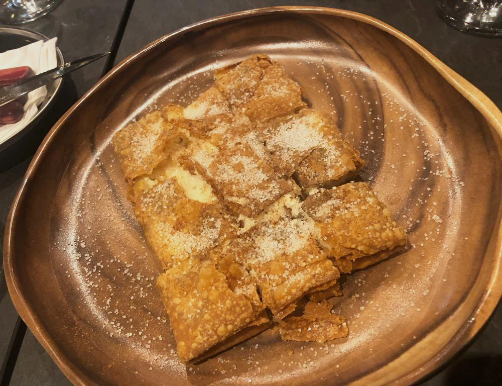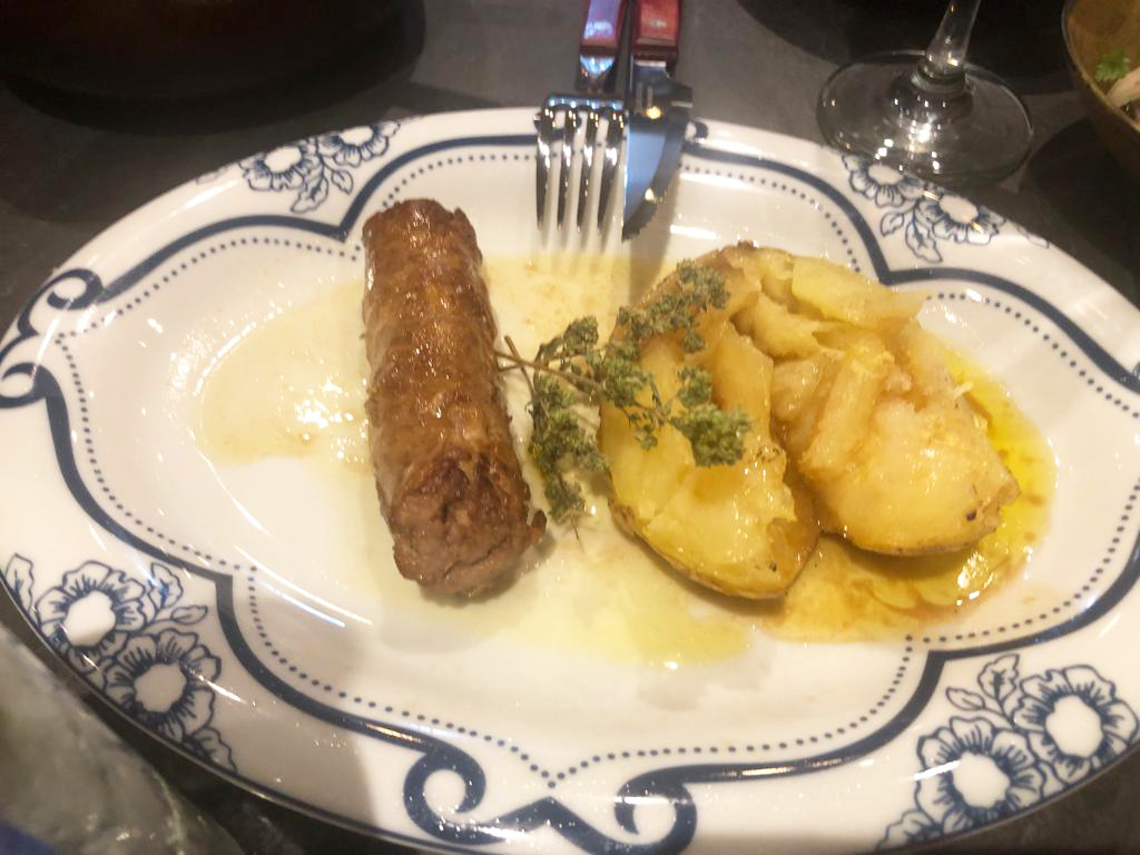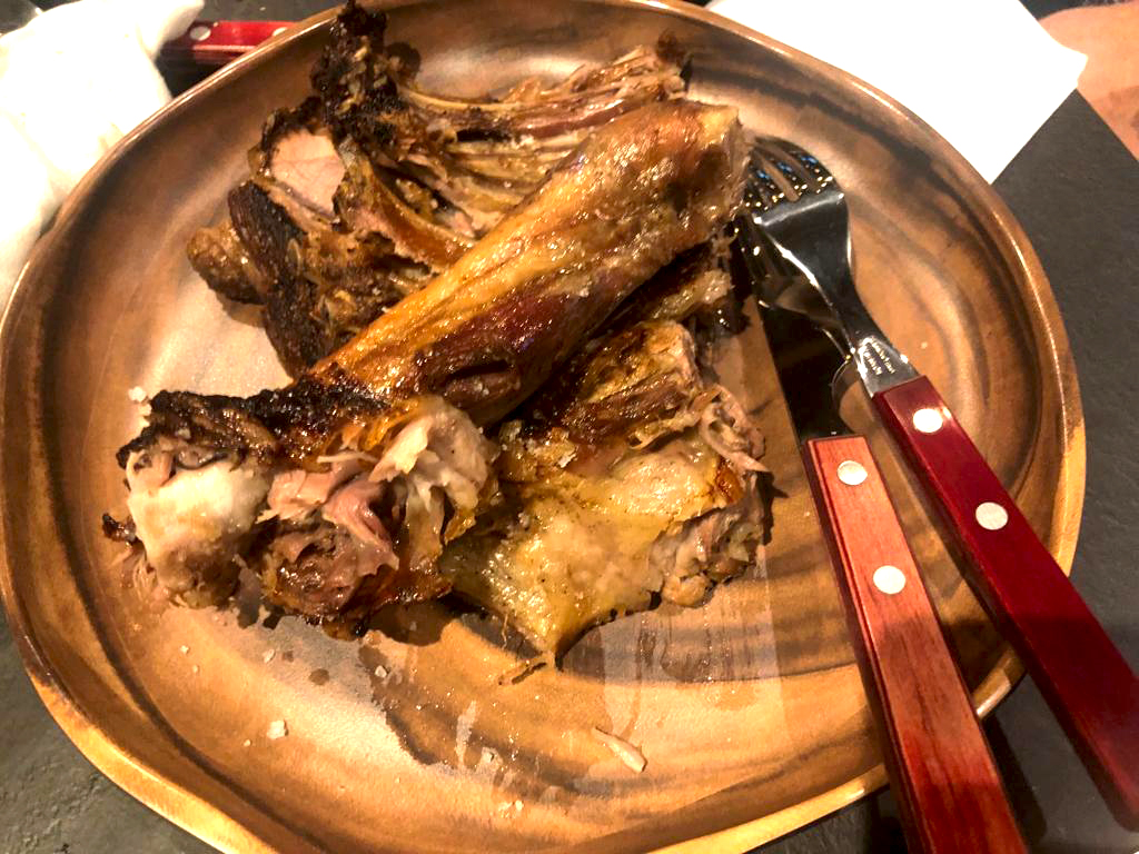 Ομολογώ ότι δεν ήμασταν πολύ συνετοί – δημοσιογραφική αδεία, πήραμε για αρχή μια σαλάτα σταμναγκάθι, μια κουκόφαβα, ένα εξαιρετικό, χειροποίητο σφακιανό λουκάνικο, το οποίο φτιάχνουν οι ίδιοι και το σερβίρουν με οφτή πατάτα και τέλος μια κλασική σαλάτα οσπρίων, τα λεγόμενα «παλικάρια». Μετά ακολούθησαν οι χοχλιοί στιφάδο, το τσιγαριαστό και οι εκπληκτικής νοστιμιάς συντριμάδες οι οποίοι δεν έχουν καμία σχέση με τις ομώνυμες ελιές, που συνηθίζουν στο Ηράκλειο. Έτσι ονομάζονται στη δυτική Κρήτη, τα κομμάτια του χοιρινού, που συνήθως έμεναν από τα χοιροσφάγια και για να τα συντηρήσουν τα μαγείρευαν με μπαχαρικά στην κατσαρόλα. Ήρθε, βέβαια, και τηγανητό κουνελάκι, αρνί αντικρυστό, κοκκινιστό με μακαρόνια και το γαμοπίλαφο, πάντα σε μερίδες για να τις μοιραστούμε κι ευτυχώς ήμασταν μεγάλη παρέα.